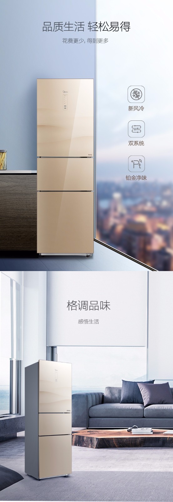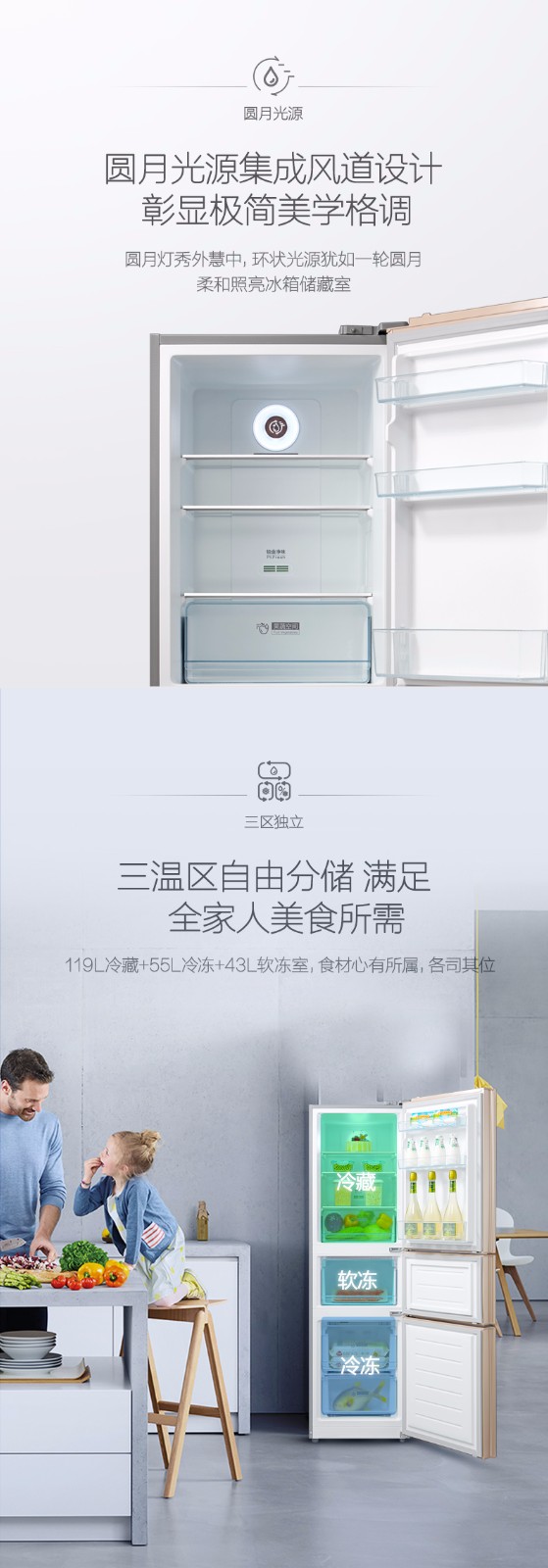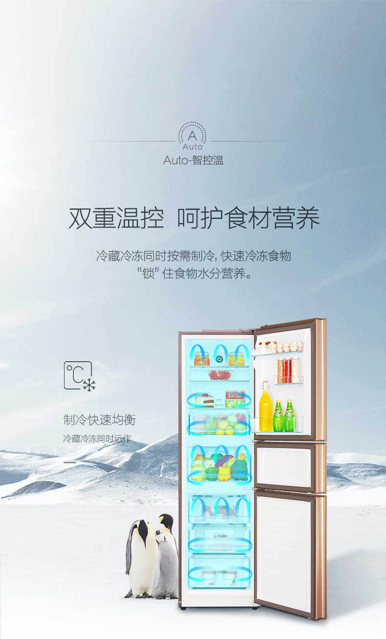 • 商品名称:美的(Midea) BCD-217WTGM 三门冰箱 家用节能 冷藏冷冻 静音 除臭除霜