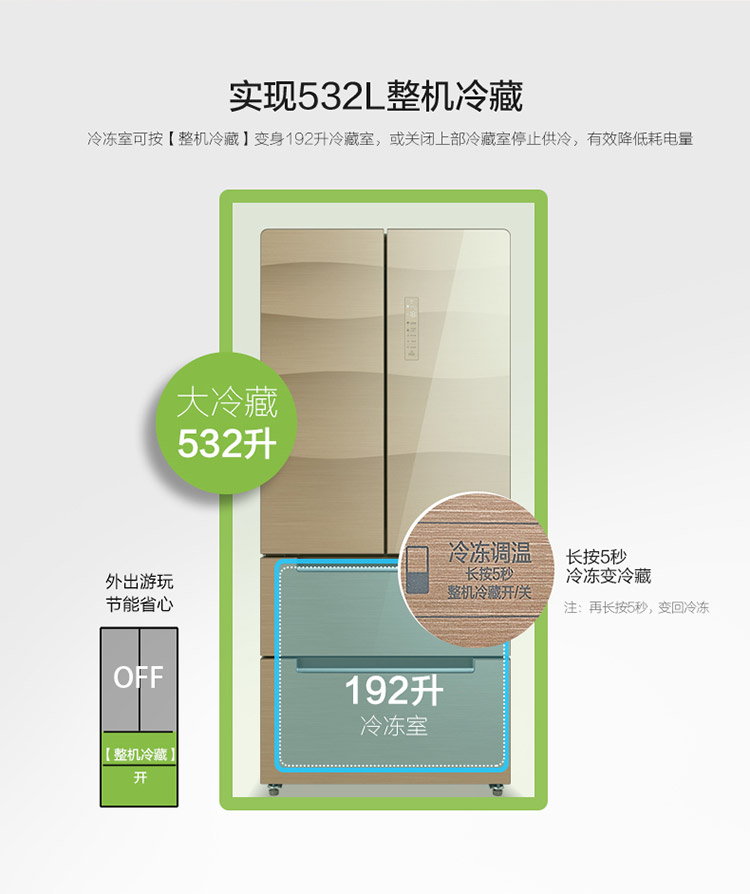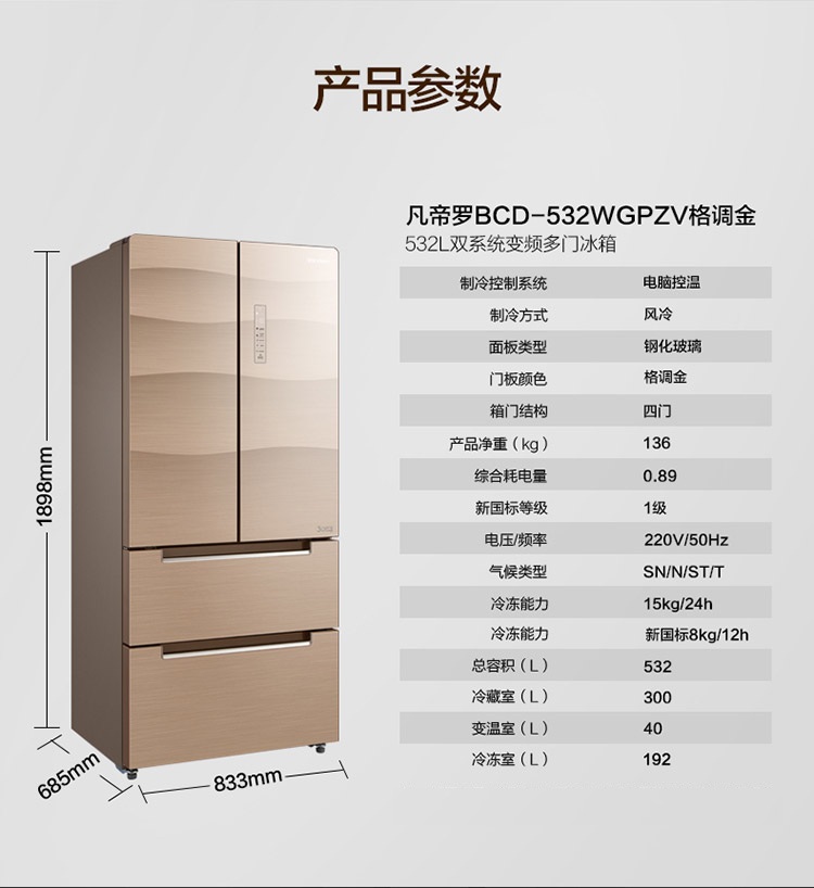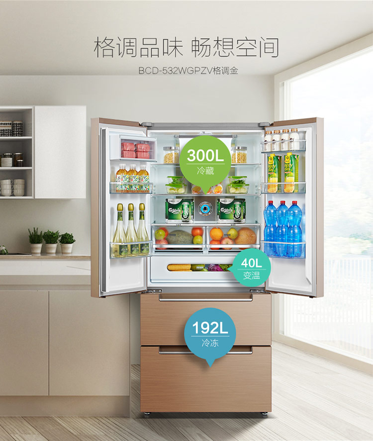 • 商品名称:美的(Midea) BCD-532WGPZV 多开门电冰箱风冷无霜变频节能电脑控温 532L