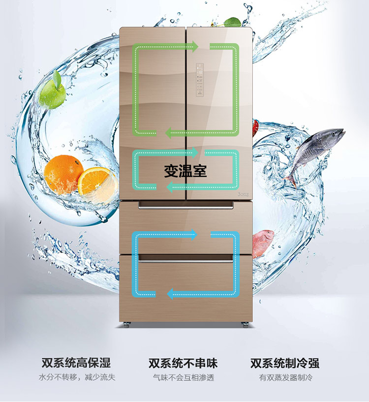 美的(Midea) BCD-532WGPZV 多开门电冰箱风冷无霜变频节能电脑控温 532L