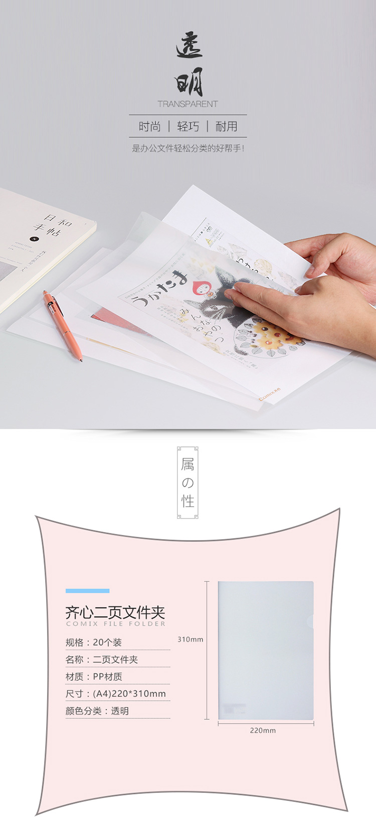 • 商品名称:齐心(Comix)EA31 A4透明二页文件套/文件袋 20个/包
