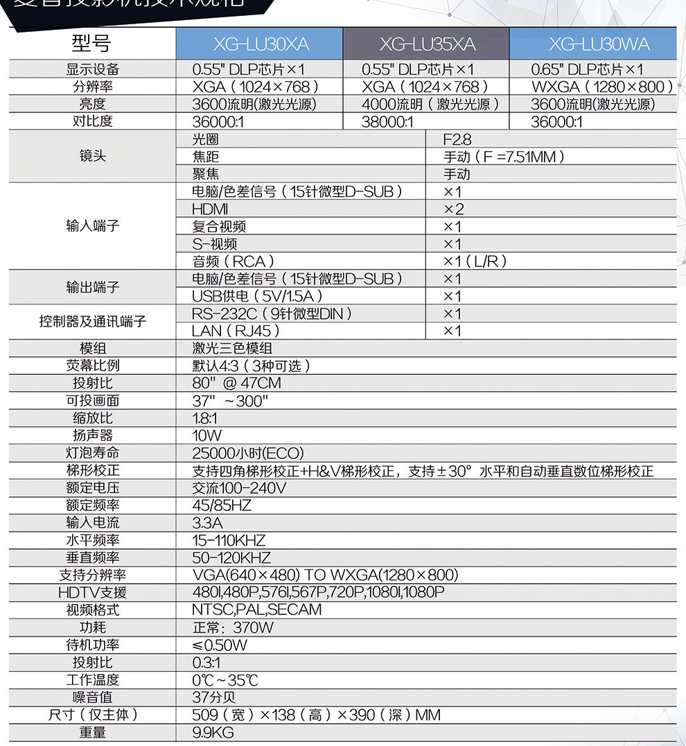 • 商品名称:夏普(SHARP)XG-LU30XA 激光超短焦投影