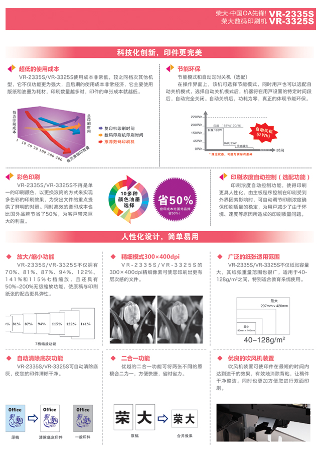 • 商品名称:荣大(RONGDA)VR-2335S 数码制版全自动孔版印刷一体化速印机