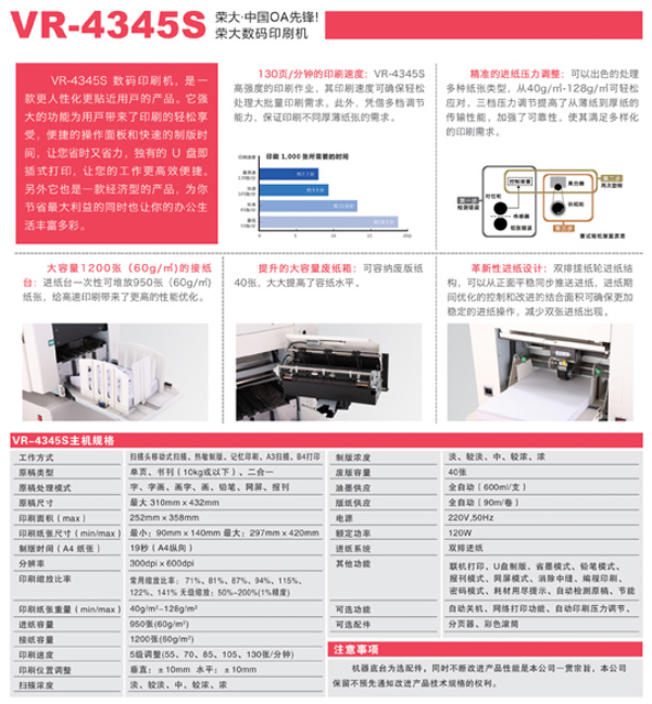 • 商品名称:荣大(RONGDA)VR-4345S 数码制版全自动孔版印刷一体化速印机