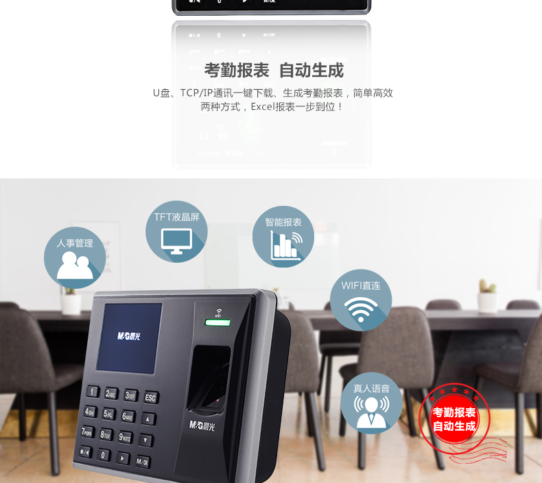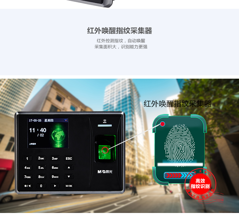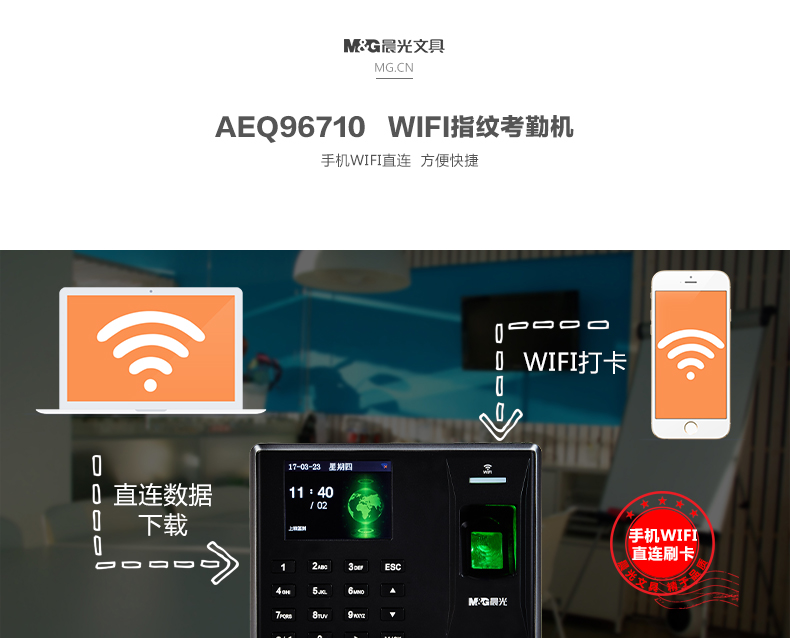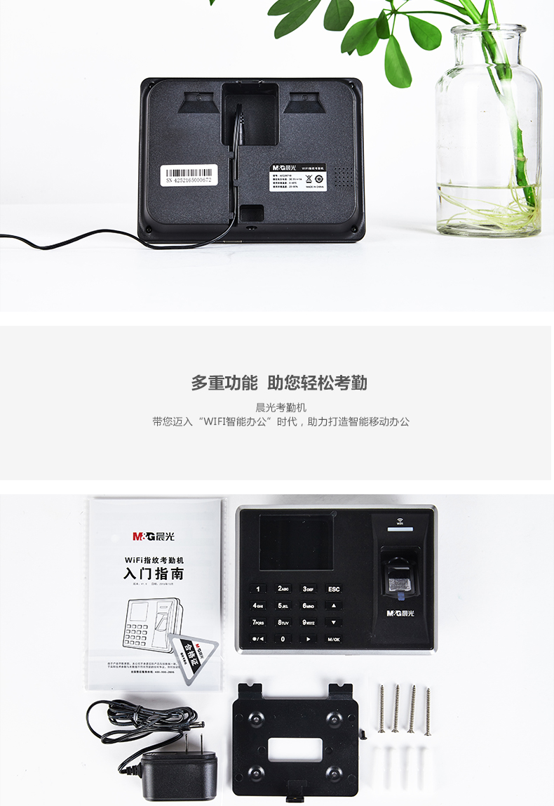 • 商品名称:晨光(M&G) AEQ96710 wifi指纹考勤机打卡机签到机 单个装 说明书 保修卡
