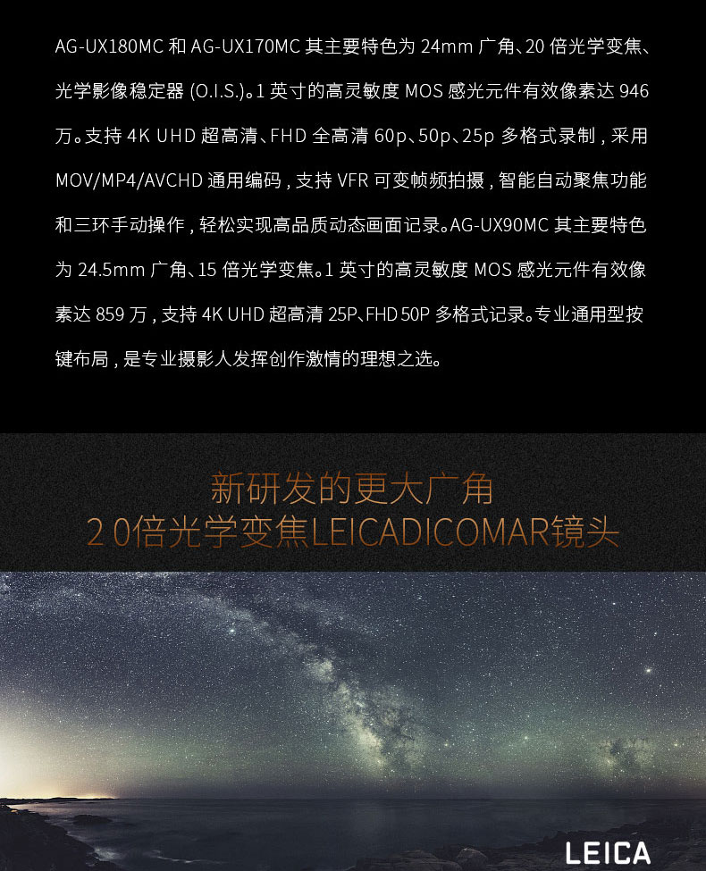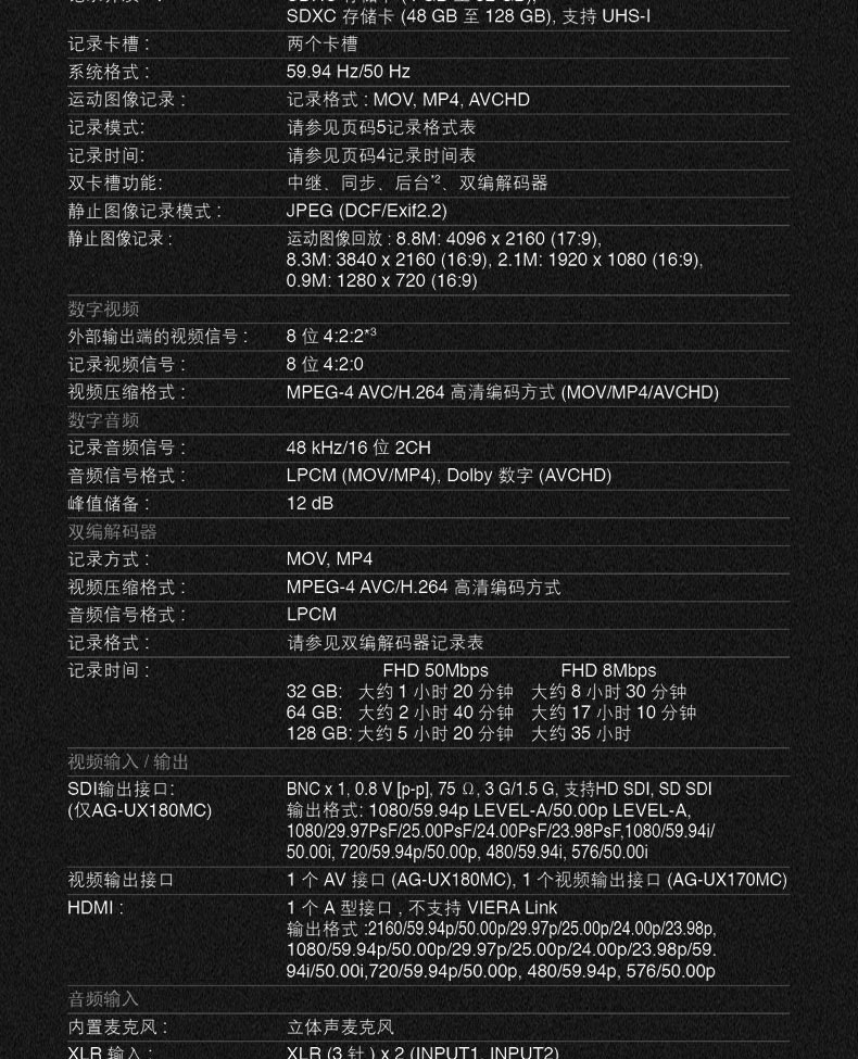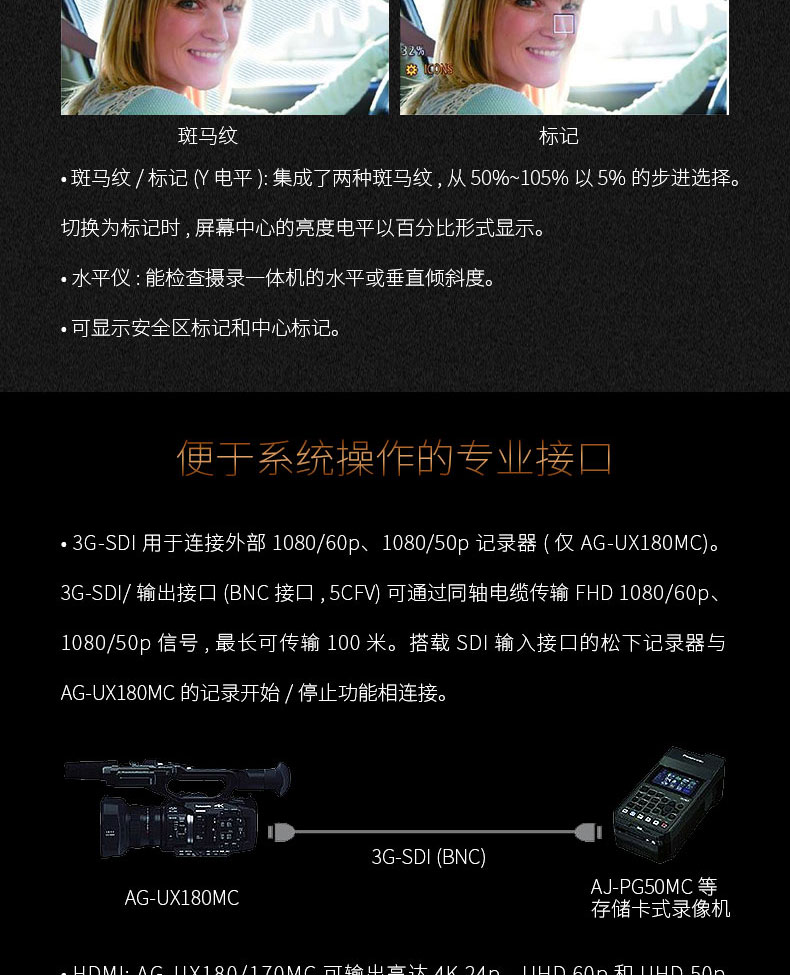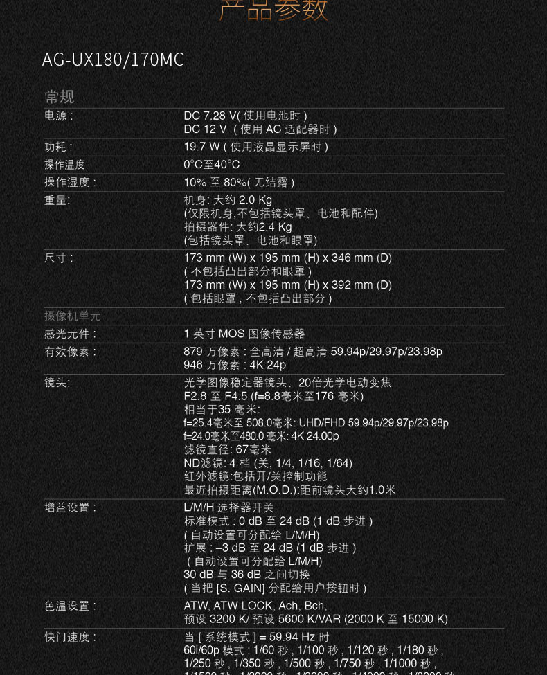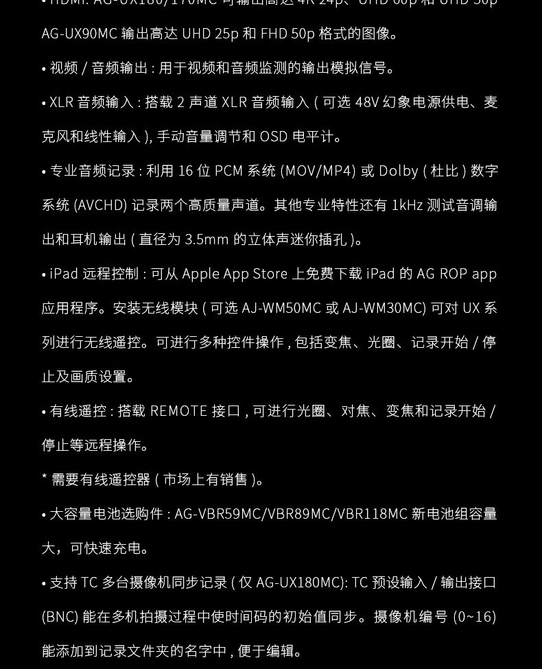 • 商品名称:松下(panasonic) AG-UX180MC 4K一英寸摄像机