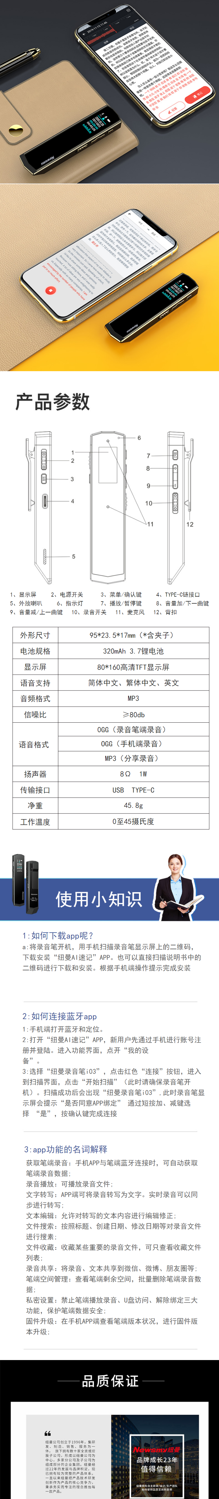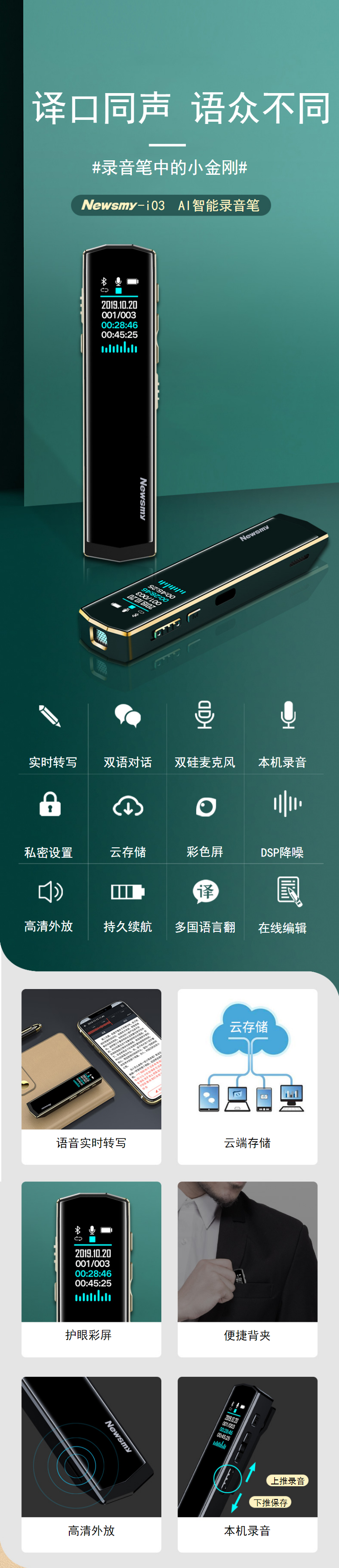 • 商品名称:纽曼(Newsmy) i03 AI智能录音笔 16G 高清录音 实时语音转文字 云存储 一年免费转写 智能降噪 太空灰