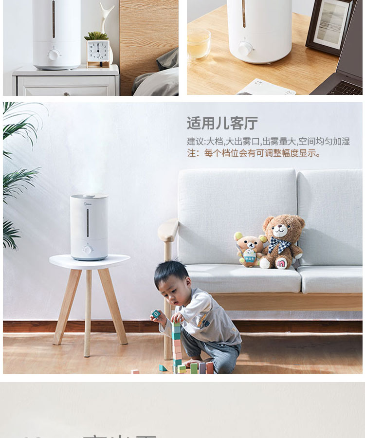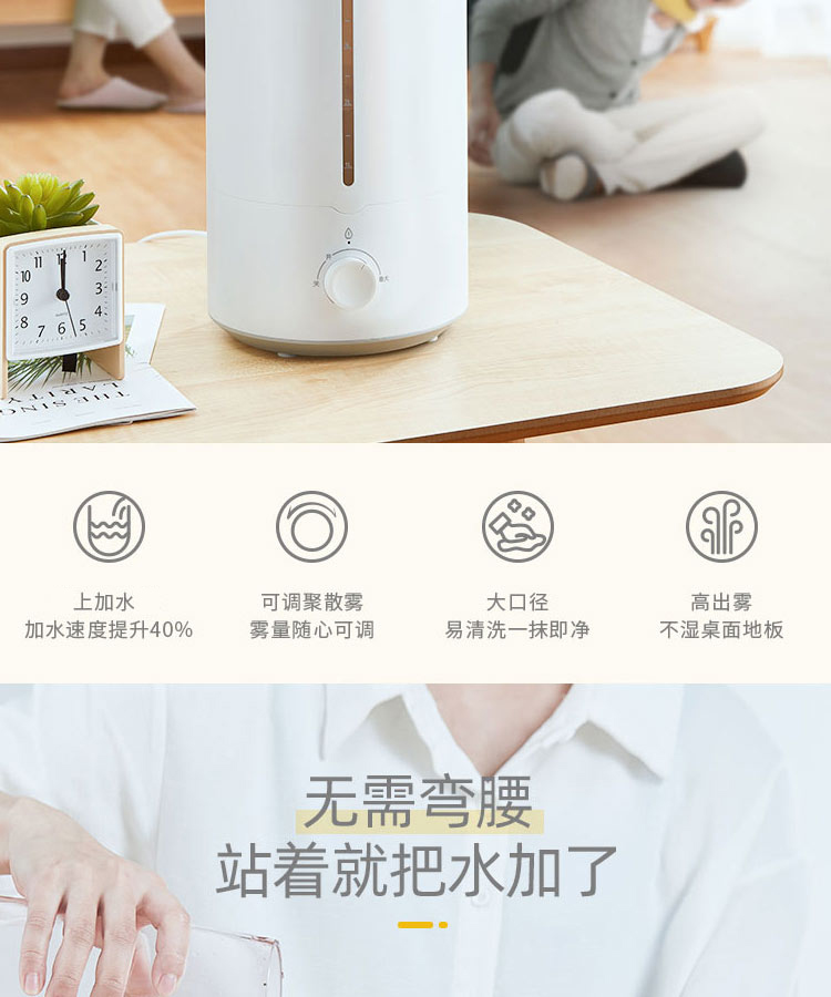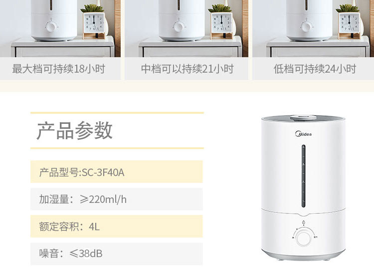 美的(Midea) 3F40A 加湿器 上加水加湿器 静音加湿器 旋控迷你