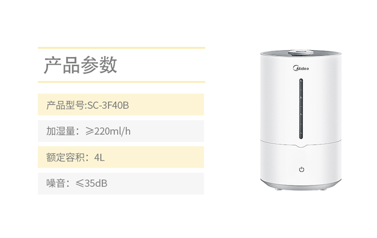 • 商品名称:美的(Midea) 3F40B 加湿器 上加水触控操作 高出雾 静音