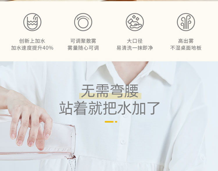 美的(Midea) 3F40B 加湿器 上加水触控操作 高出雾 静音