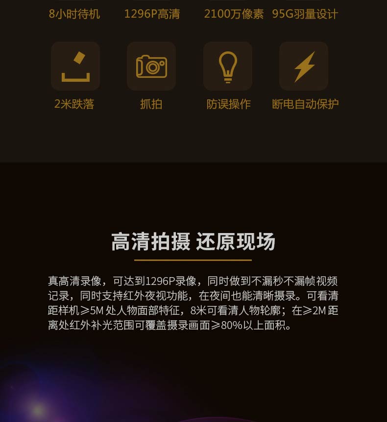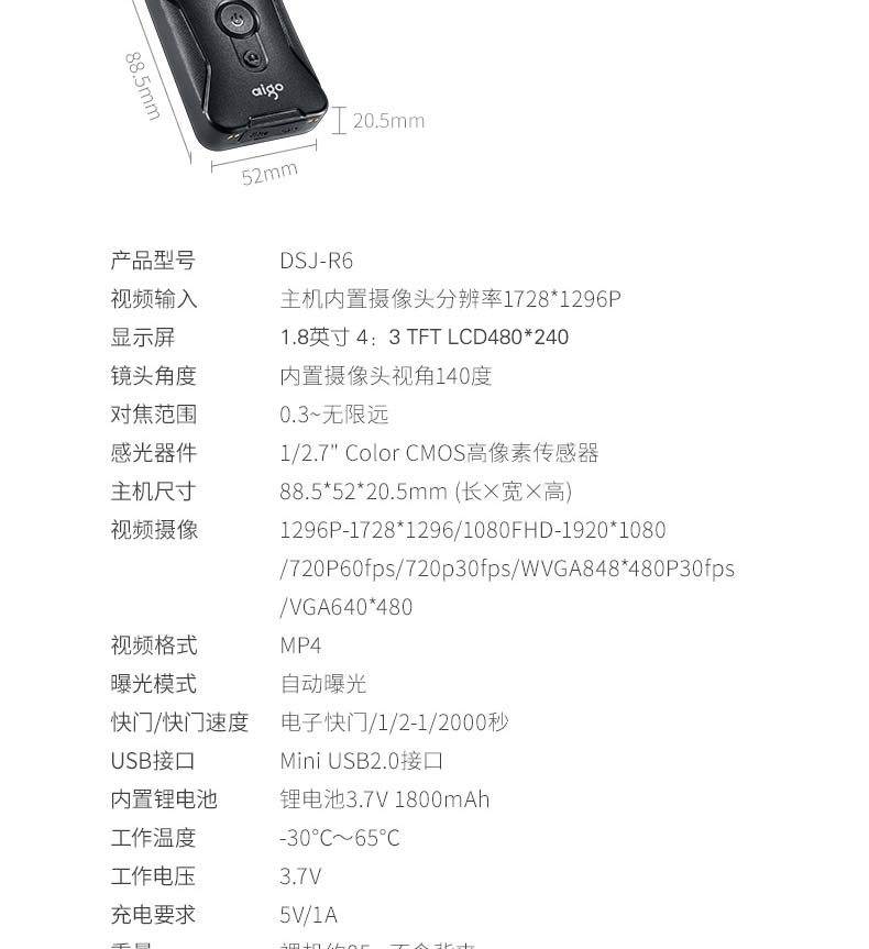 • 商品名称:爱国者(aigo) DSJ-R6 执法记录仪 红外夜视1296P便携录音录像拍照 微型便携户外骑行 64G 黑色
