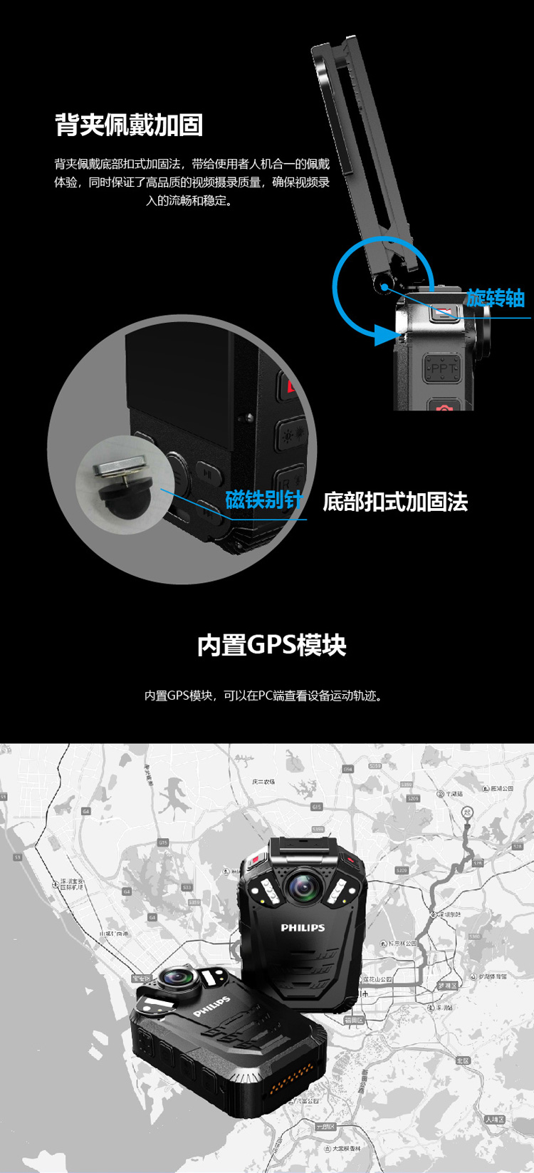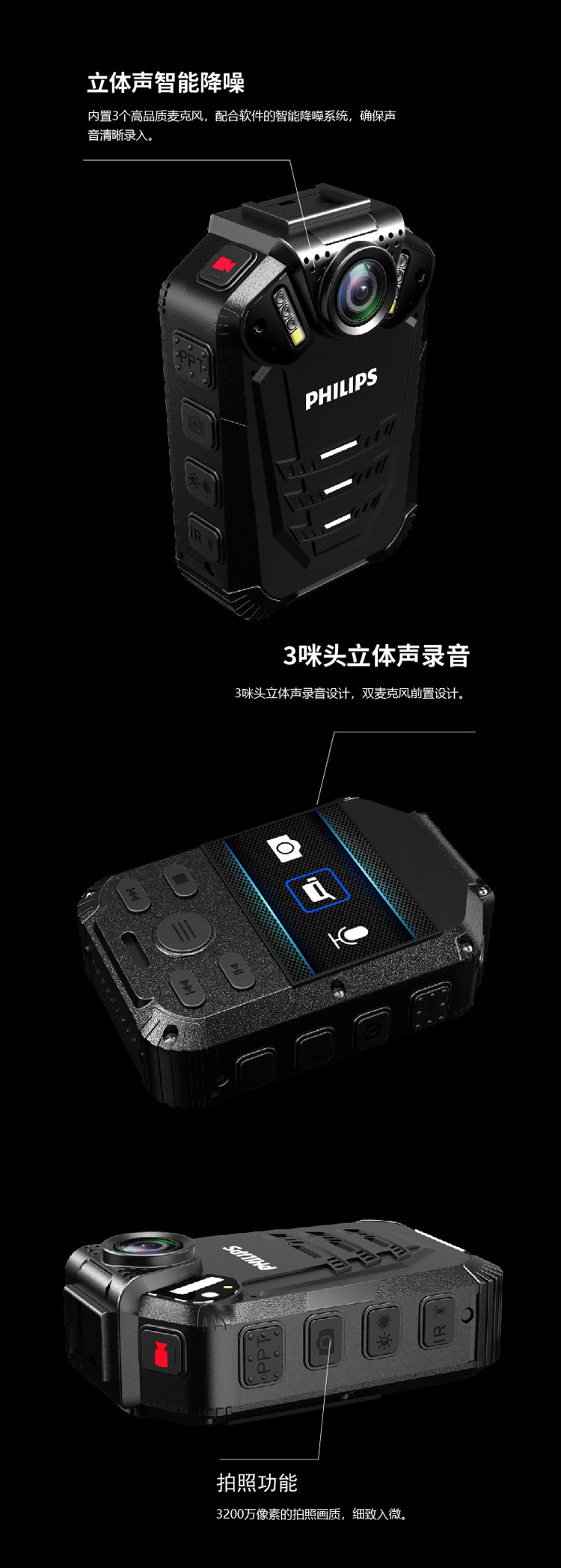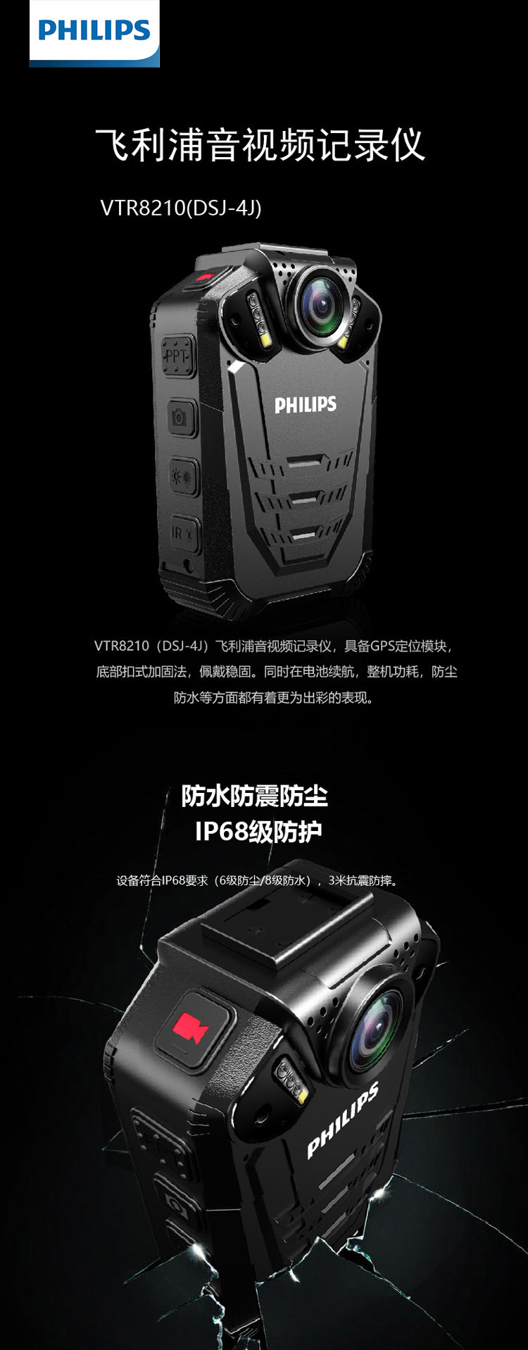 • 商品名称:飞利浦(PHILIPS)VTR8210 执法记录仪 执法取证 便携音视频 1296P高清红外广角夜视摄像机