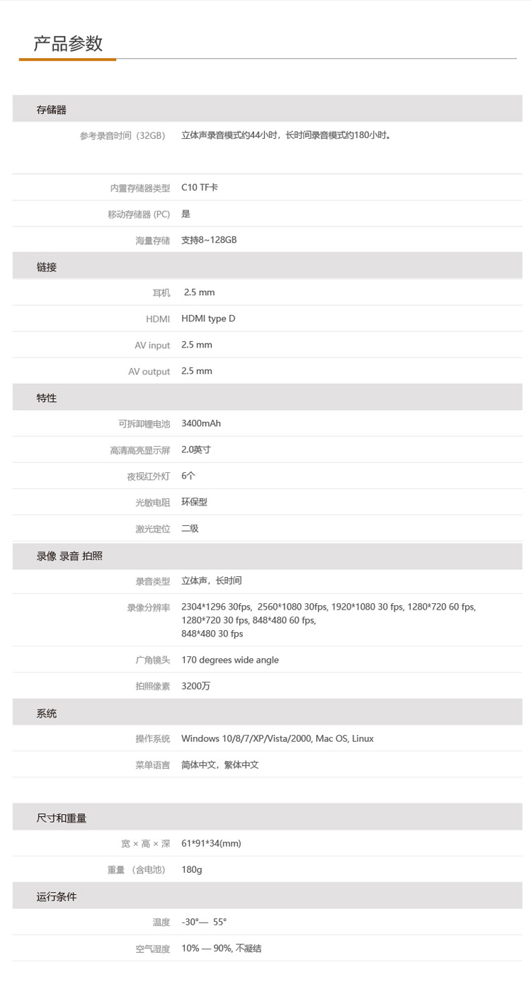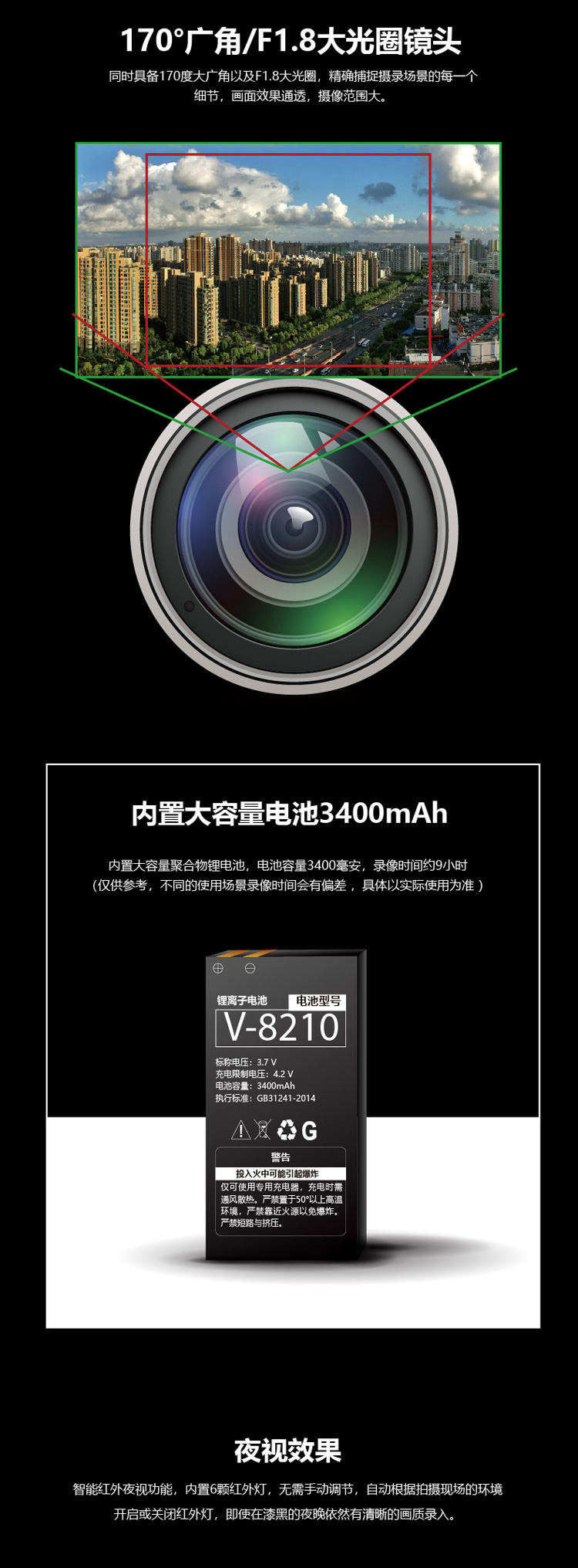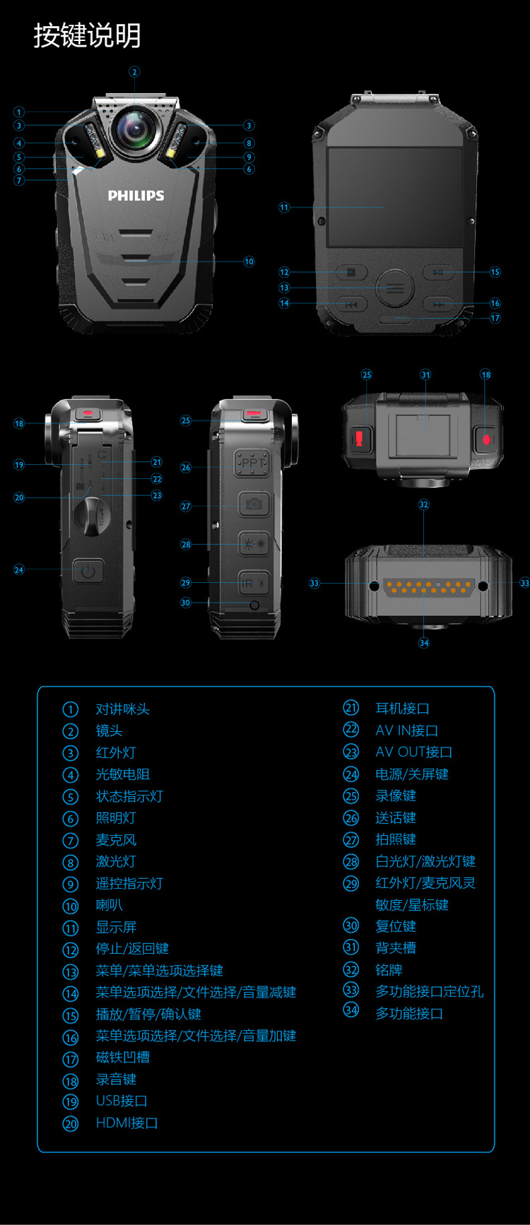 • 商品名称:飞利浦(PHILIPS)VTR8210 执法记录仪 执法取证 便携音视频 1296P高清红外广角夜视摄像机