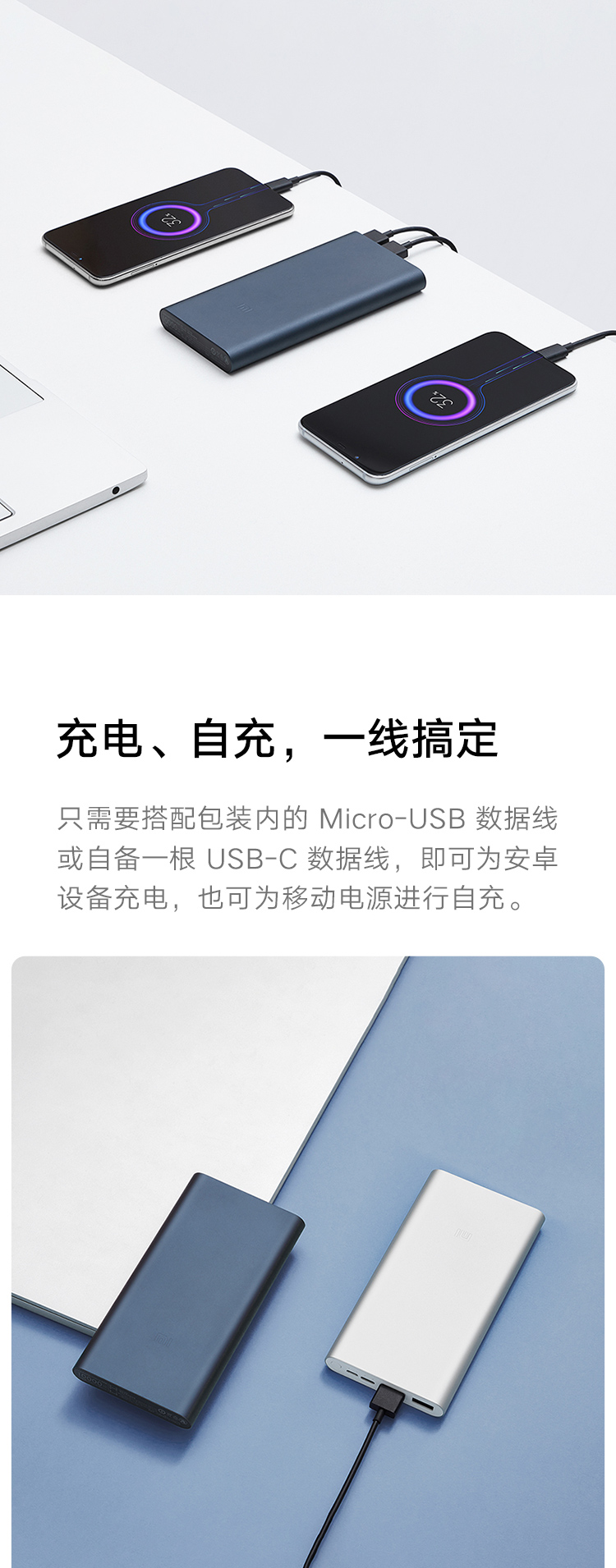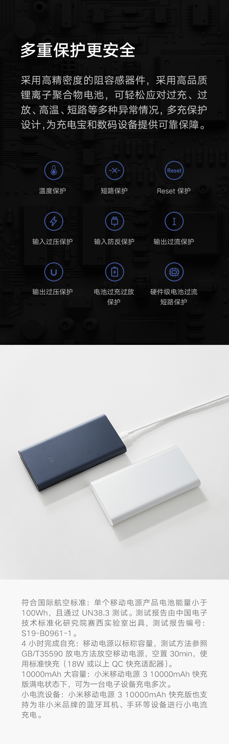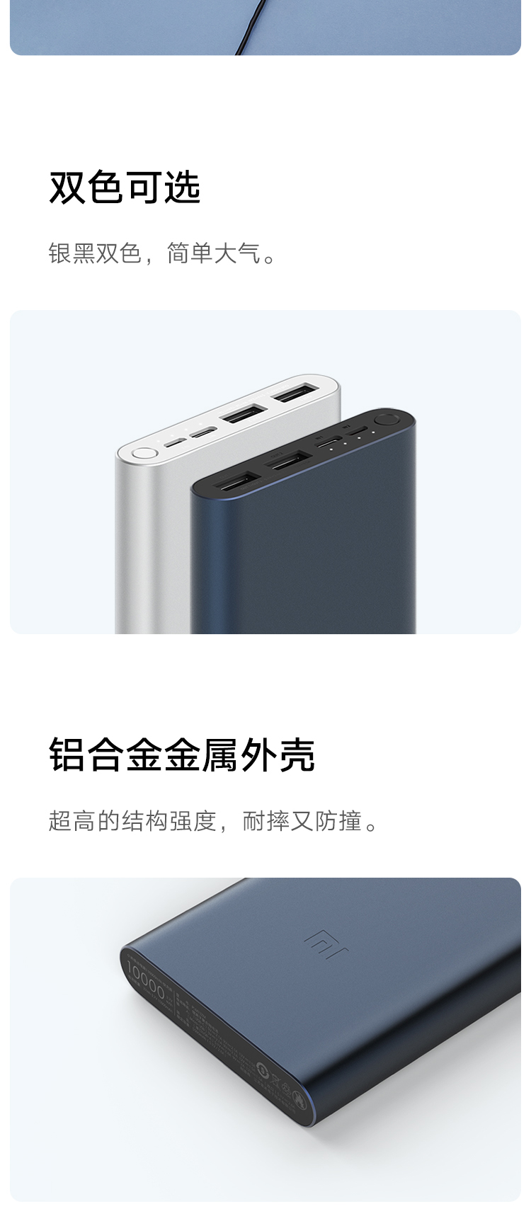 • 商品名称:小米(MI) 移动电源3 10000mAh 快充版 双向18W快充|双口输入双口输出|高密度锂聚合物电芯 (黑色)