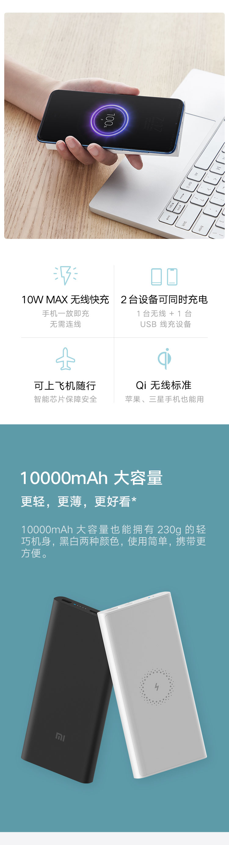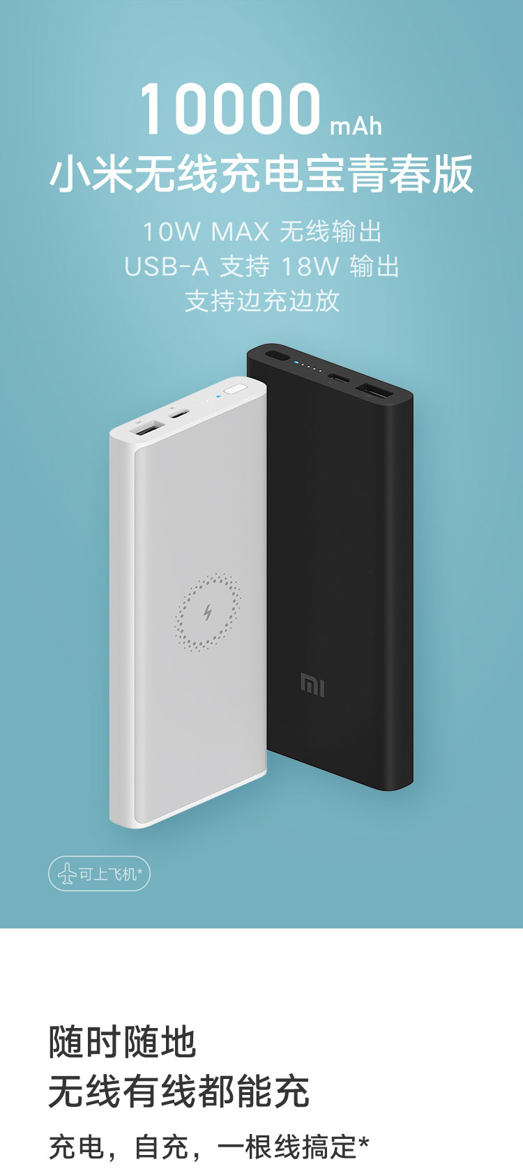 • 商品名称:小米(MI) 无线充电宝 青春版 10000mAh (黑色)