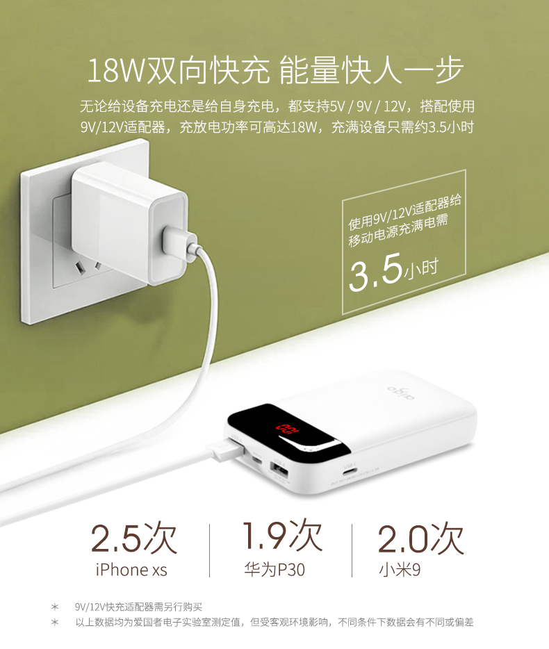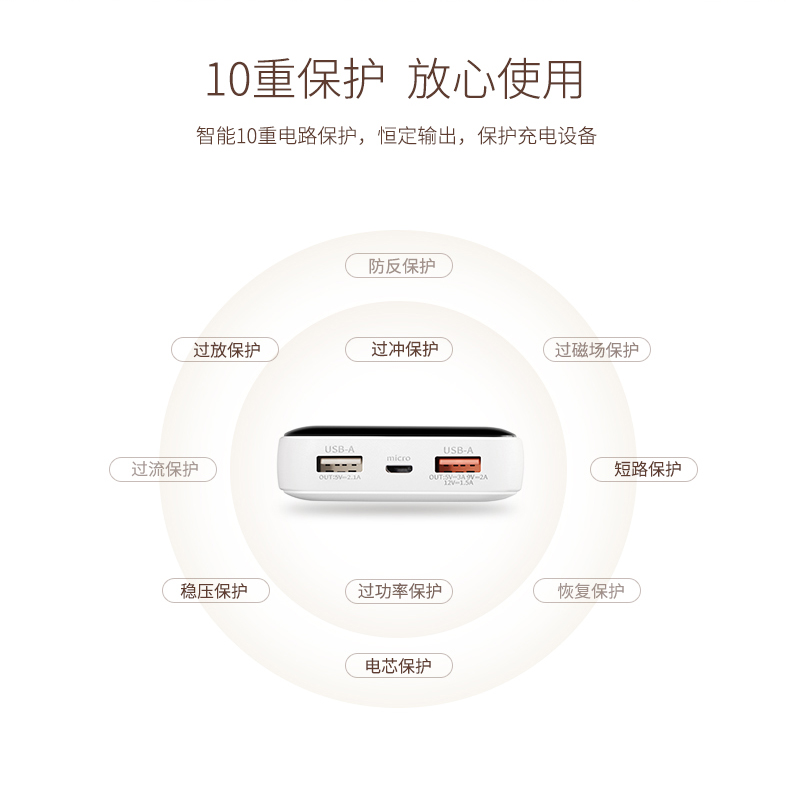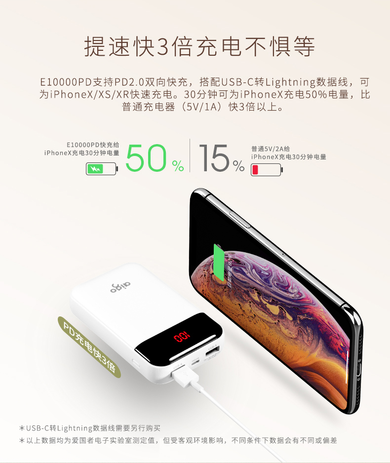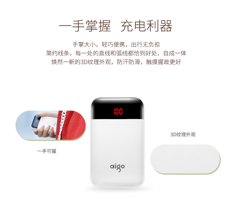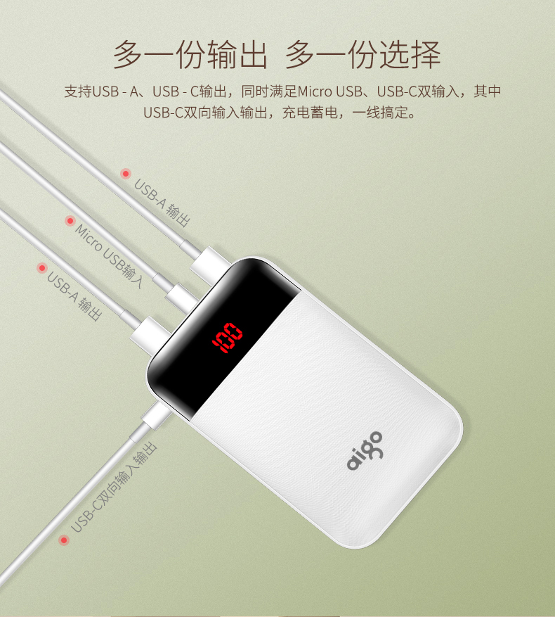 • 商品名称:爱国者(aigo) E10000PD 聚合物 TYPE-C 18W双向快充 10000毫安充电宝 快充移动电源 白色