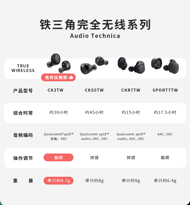 • 商品名称:铁三角(Audio-technica) ATH-CK3TW 真无线蓝牙发烧入耳式耳机 蓝牙5.0 跑步耳麦 (蓝色)