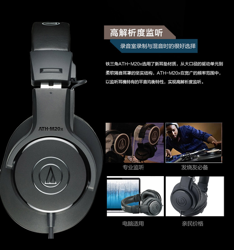 • 商品名称:铁三角(Audio-technica)ATH-M20x 入门级专业监听头戴式耳机