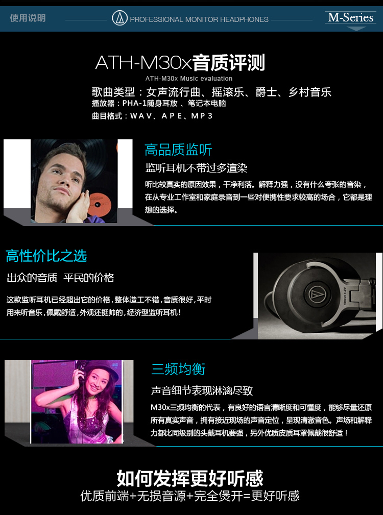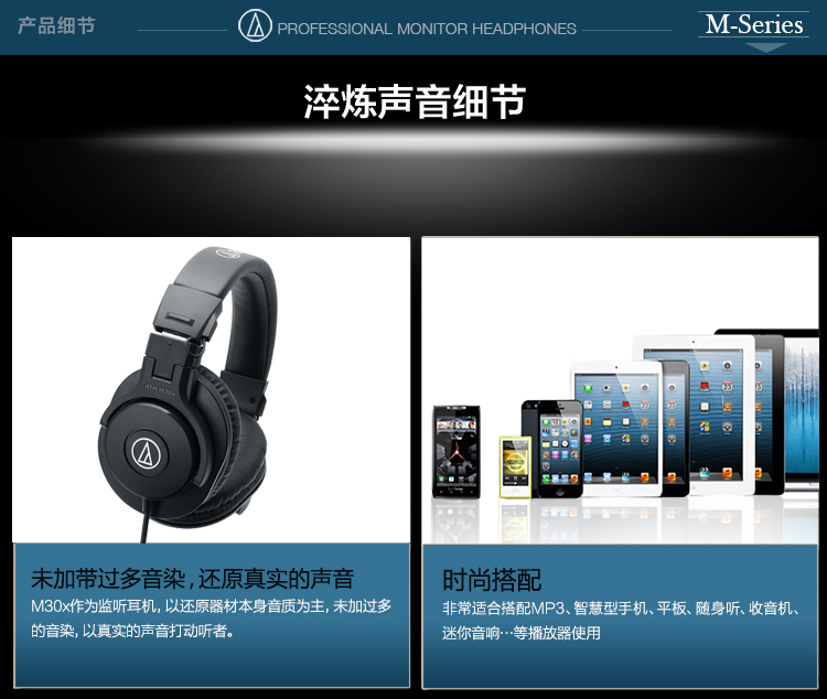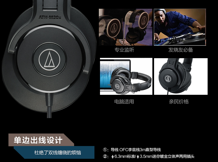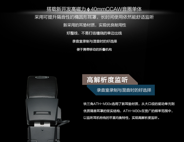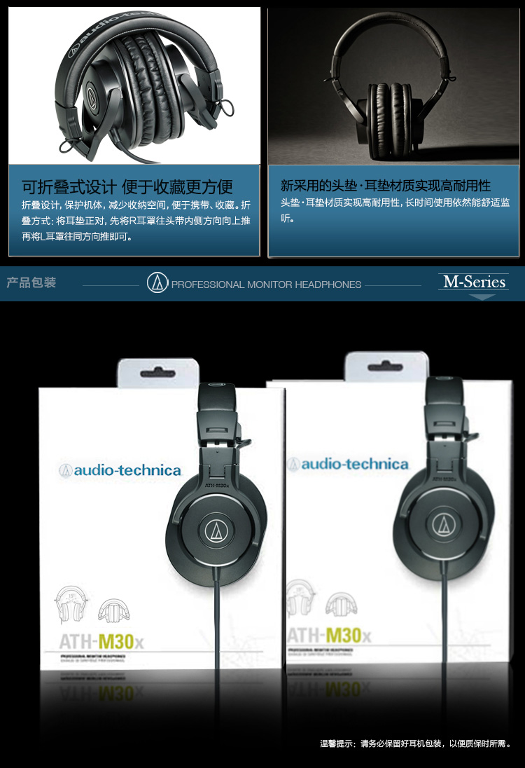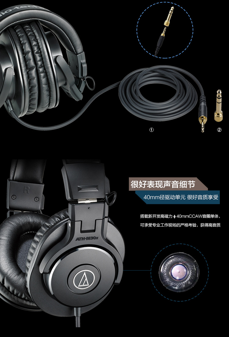 • 商品名称:铁三角(Audio-technica)ATH-M30X 头戴式专业录音HIFI监听耳机 封闭式便携可折叠