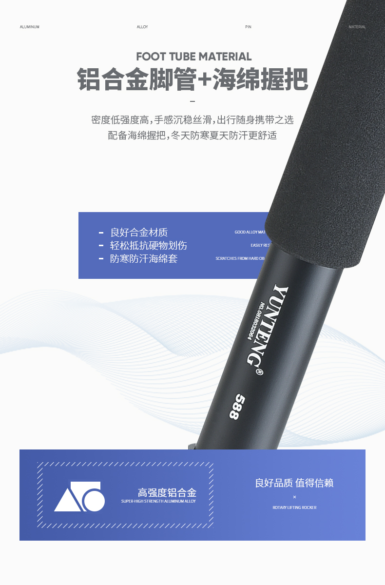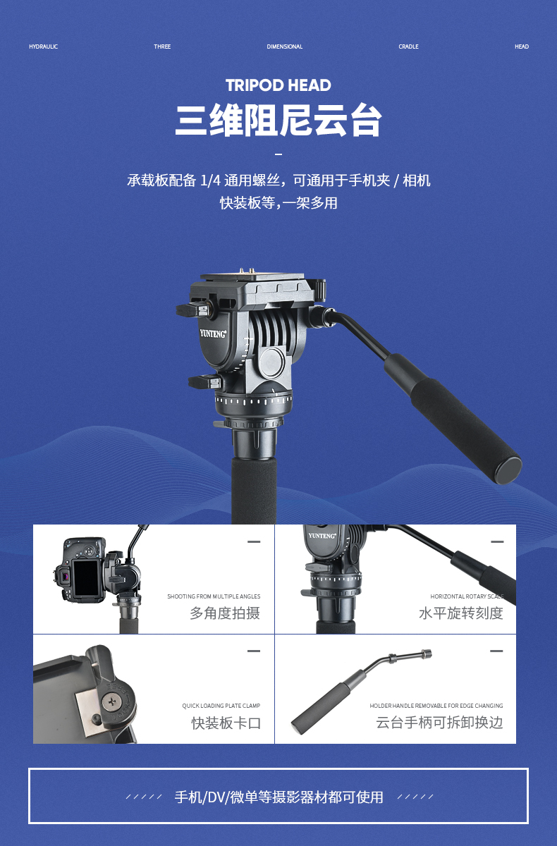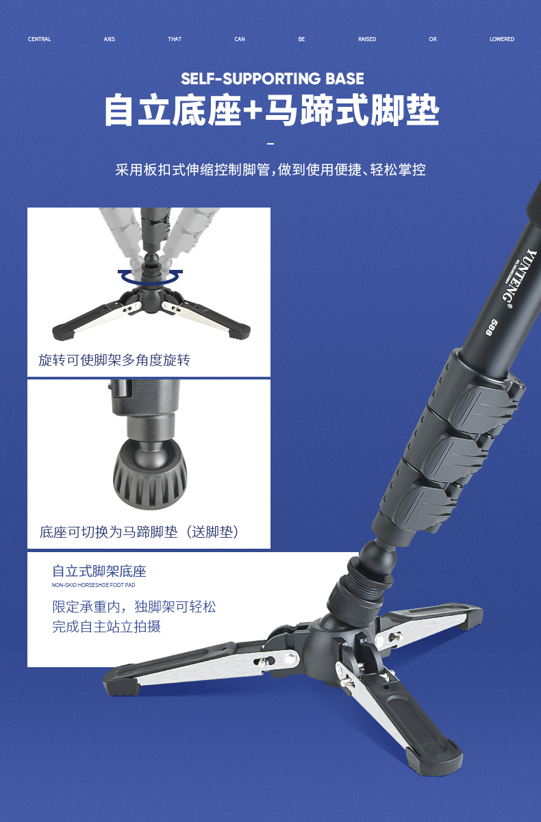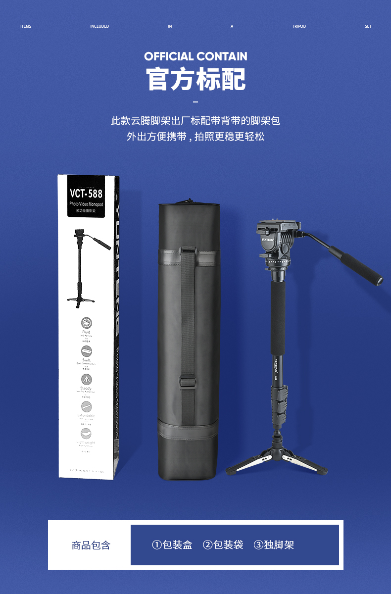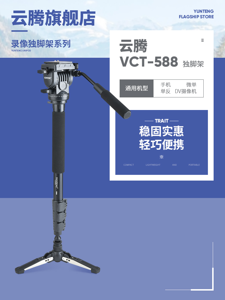 云腾(YUNTENG) 588 专业独脚架单反摄像机液压阻尼铝合金稳定独角支架赛事跟拍通 带三脚撑单脚架
