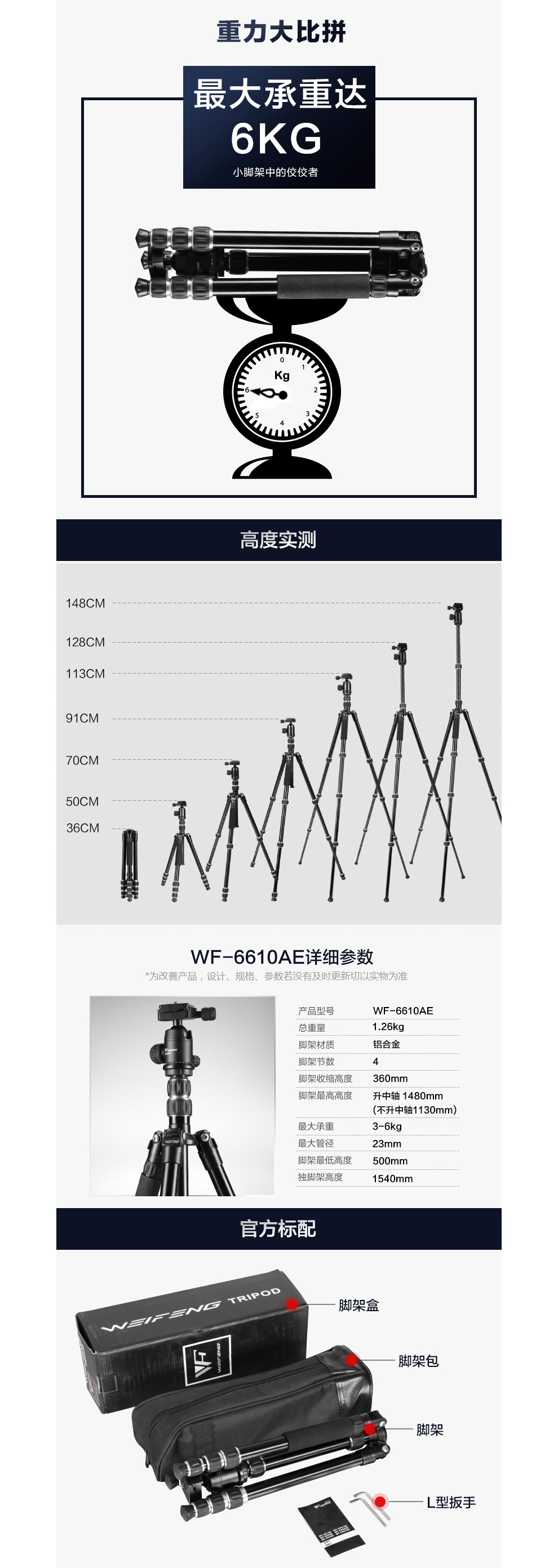 • 商品名称:伟峰(WEIFENG) WF-6610A 专业相机支架三脚架 单反三角架便携摄像机微单轻便脚架
