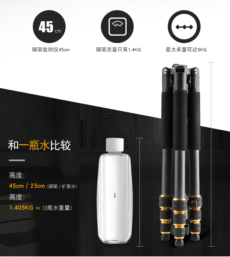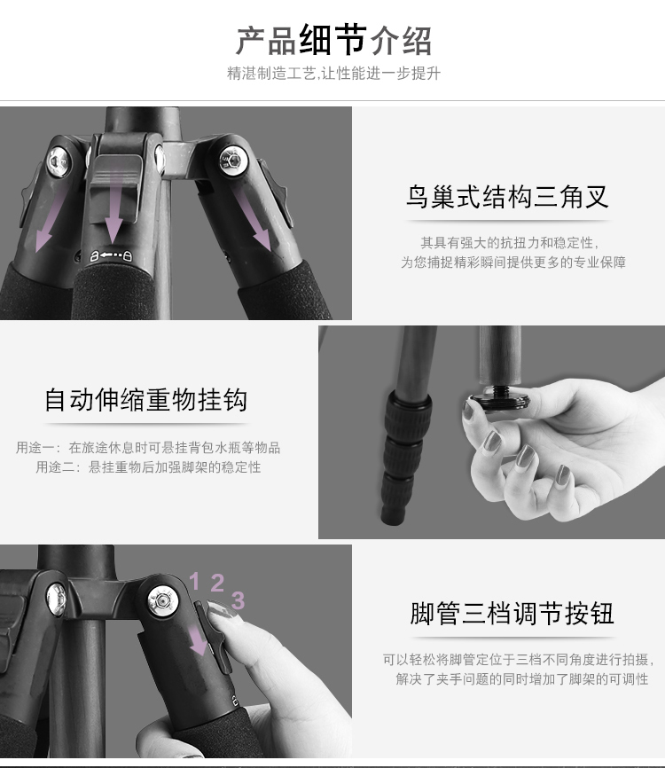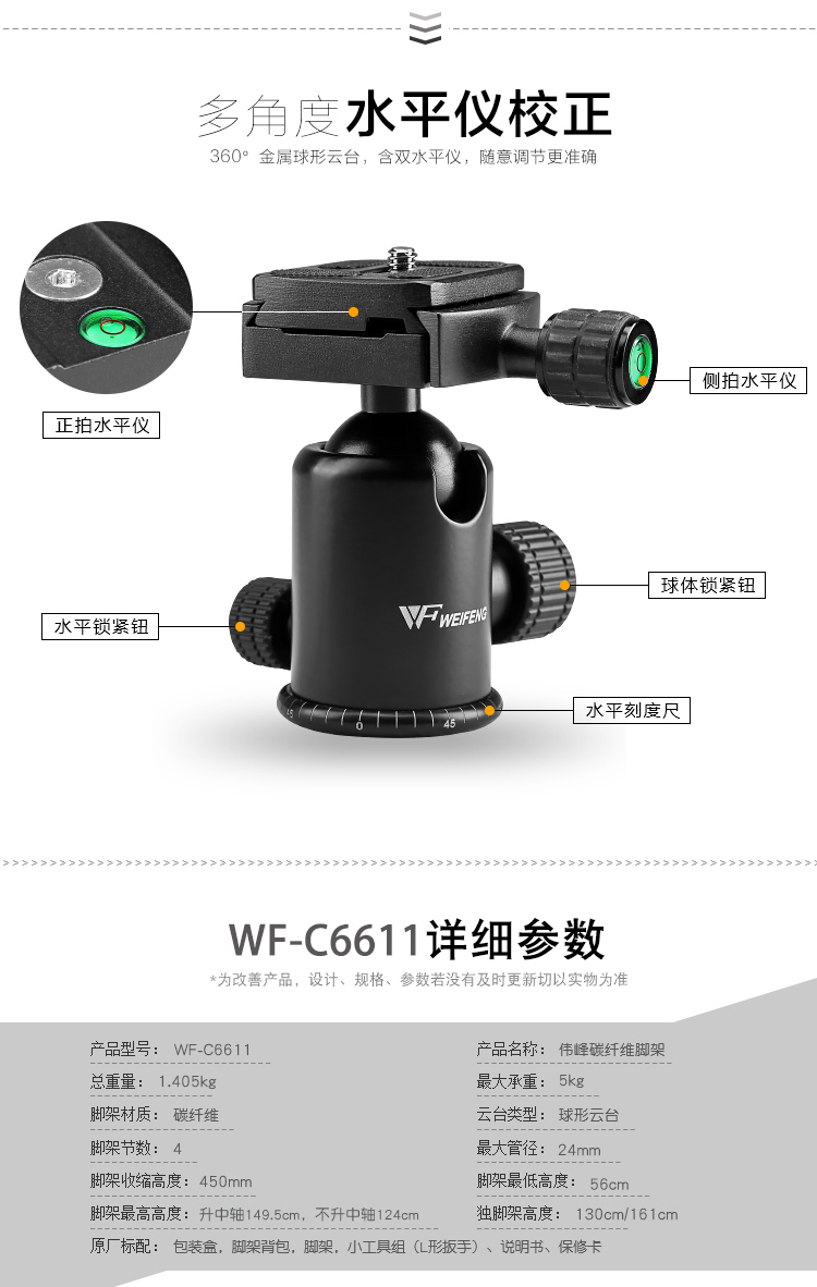 • 商品名称:伟峰(WEIFENG) WF-C6611 碳纤维三脚架 单反相机摄影脚架支架 旅游便携三角架 黑色