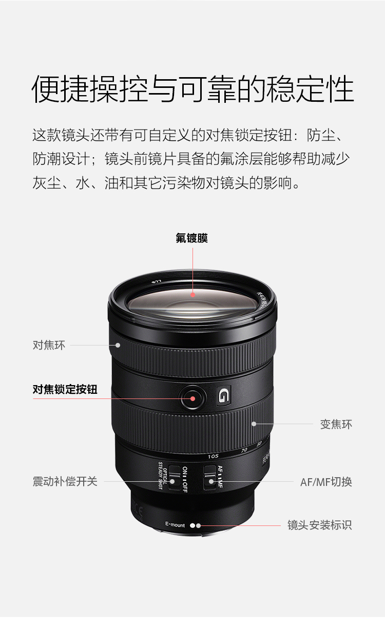 • 商品名称:索尼(SONY) FE 24-105mm F4 全画幅标准变焦微单相机G镜头 E卡口(SEL24105G)