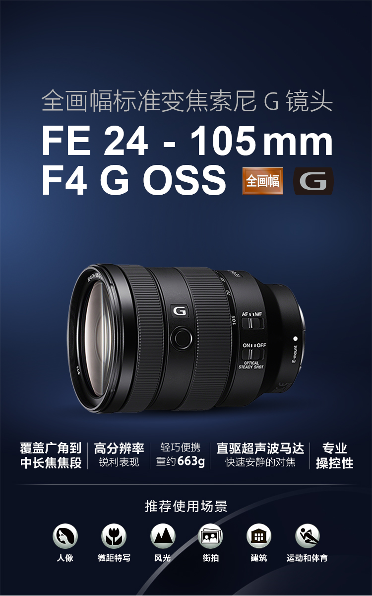 索尼(SONY) FE 24-105mm F4 全画幅标准变焦微单相机G镜头 E卡口(SEL24105G)