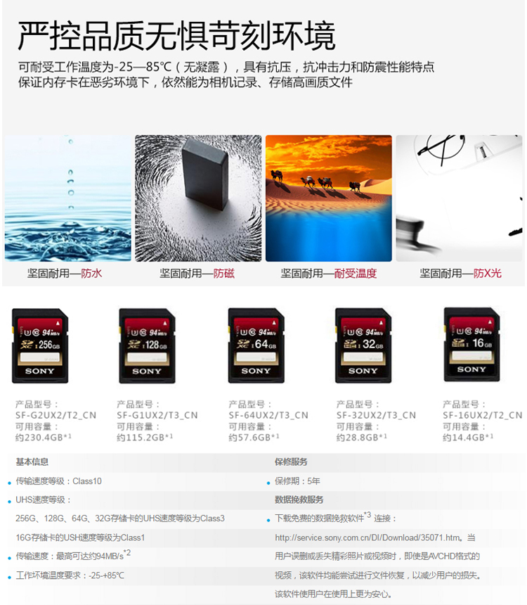 • 商品名称:索尼(SONY) SF-G2UX2 256G存储卡 SDXC UHS-I内存卡/SD卡 94MB/S读取速度 (UX系列(94MB/S))