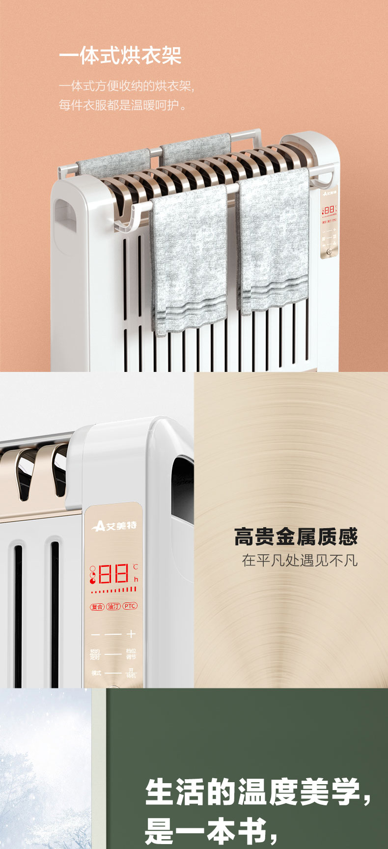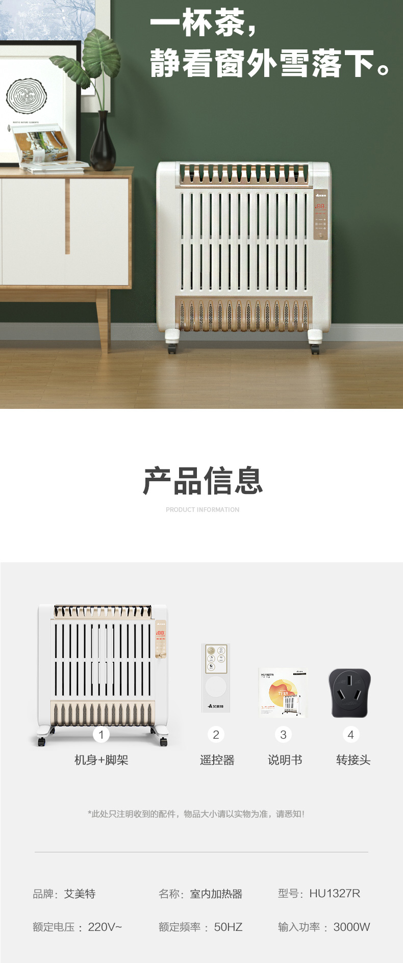 • 商品名称:艾美特(AIRMATE) HU1327R 取暖器/电暖器家用/电热油汀/电暖气片 13片安全包裹式宽片