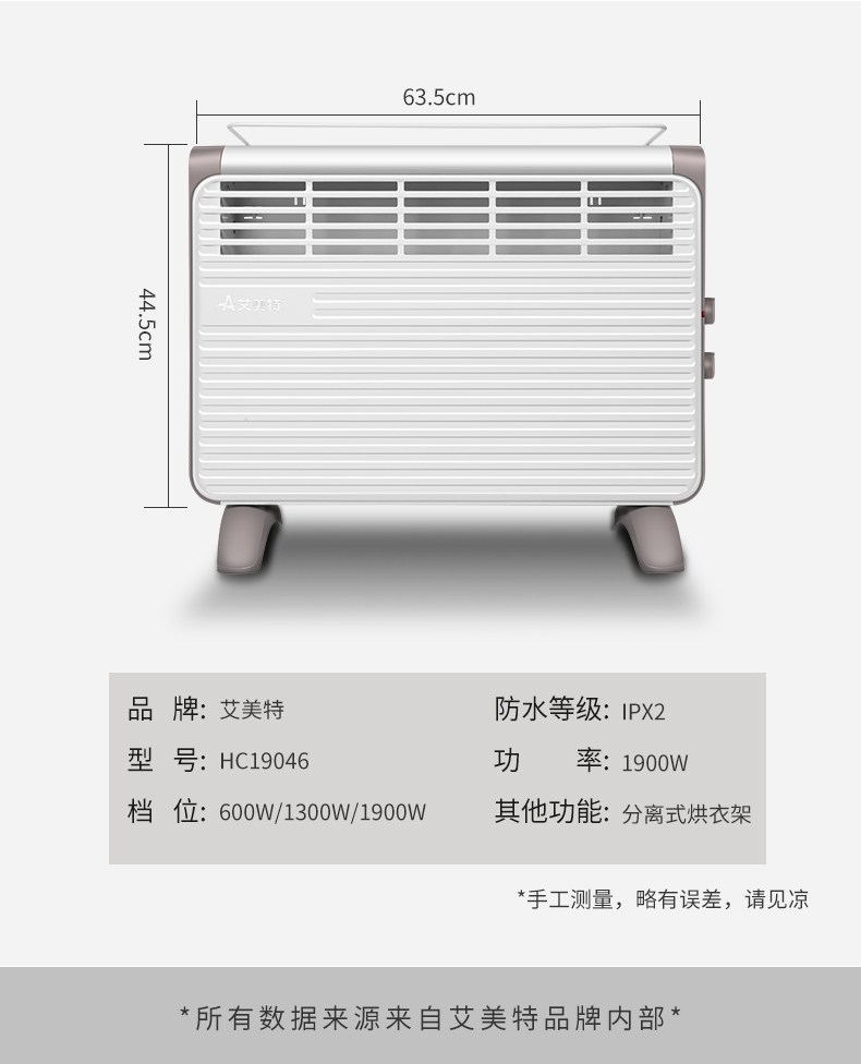 • 商品名称:艾美特(AIRMATE) HC19046 取暖器/电暖器/欧式快热炉 暖气/电热 浴室防水
