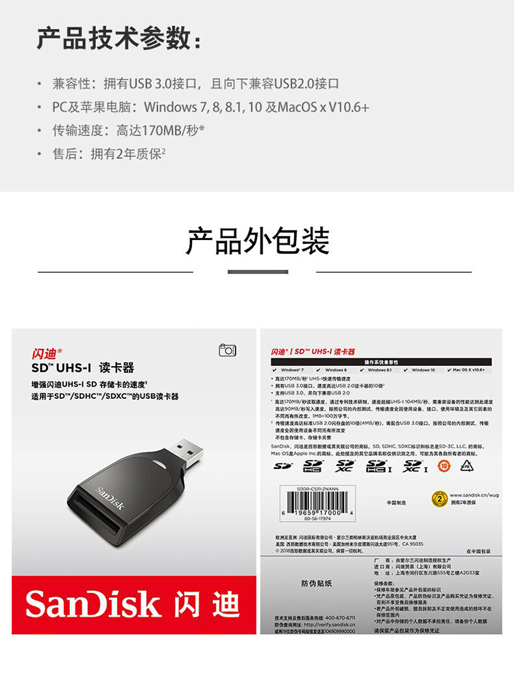 • 商品名称:闪迪(SanDisk) SDDR-C531-ZNANN读卡器 USB3.0 SDUHS-I