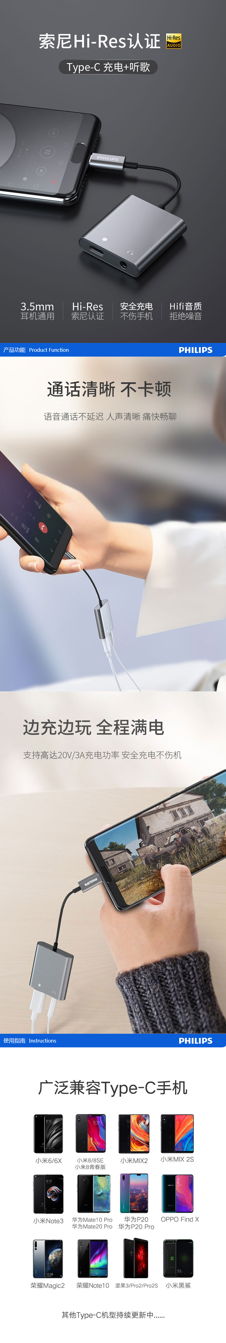 飞利浦(PHILIPS) SWR1504J/93 TYPE-C转3.5mm音频带充电口安卓手机USB-C转接头