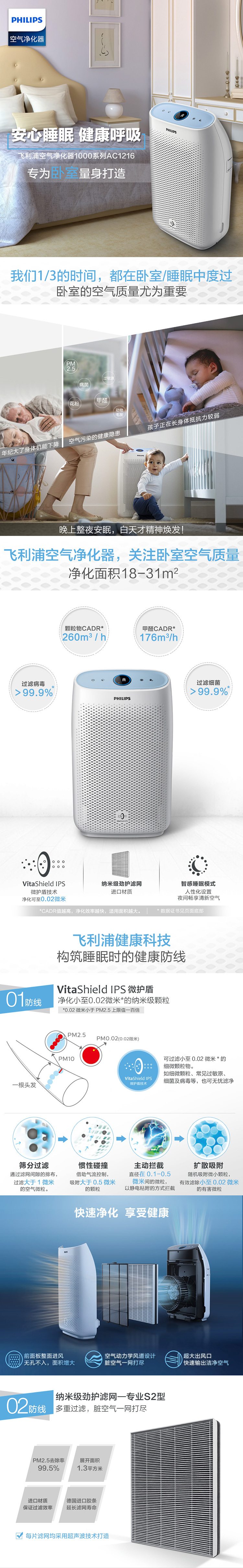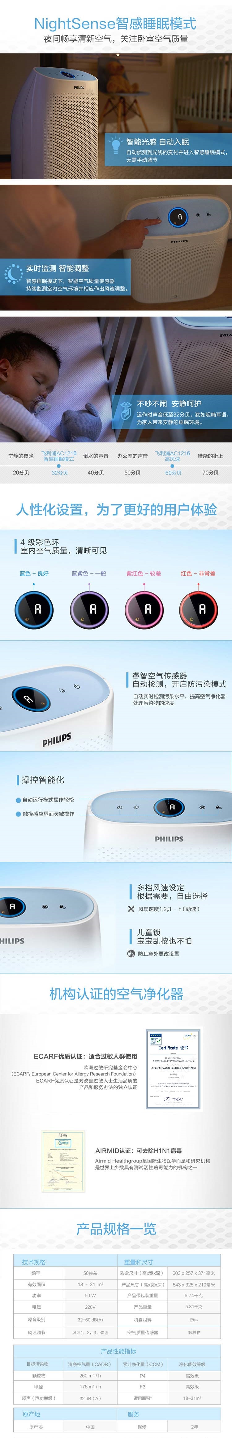 • 商品名称:飞利浦(PHILIPS) AC1216 空气净化器 家用除甲醛 除雾霾 除过敏原 除细菌 病毒