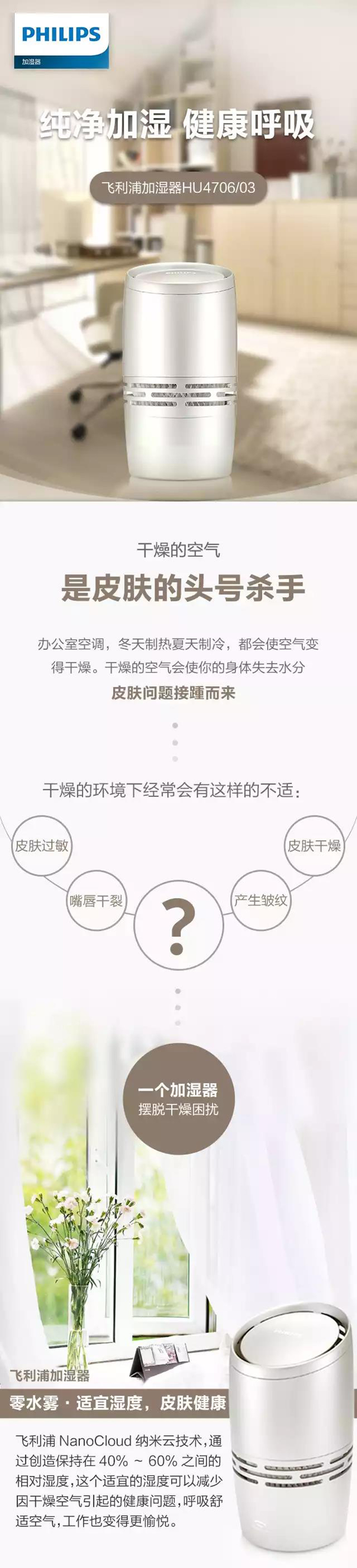 • 商品名称:飞利浦(PHILIPS) HU4706 加湿器 纳米无雾 迷你静音 空气加湿 金属色