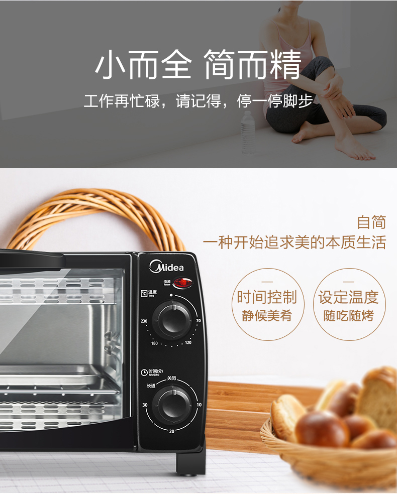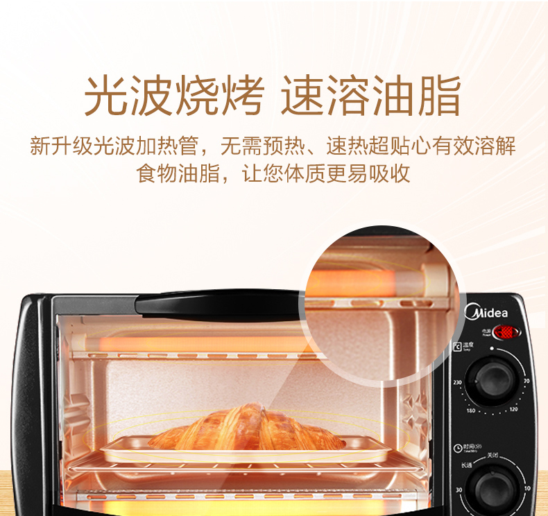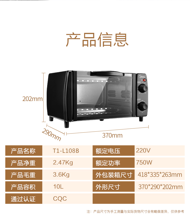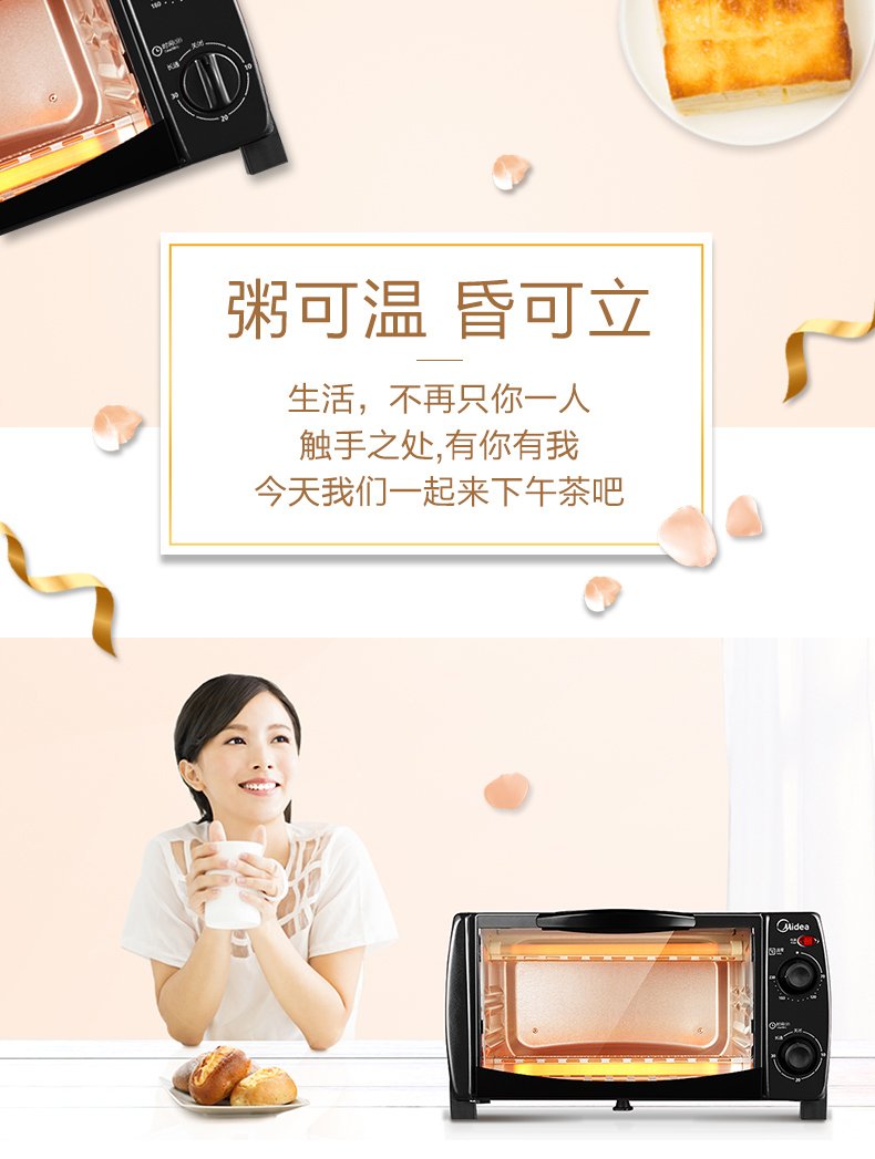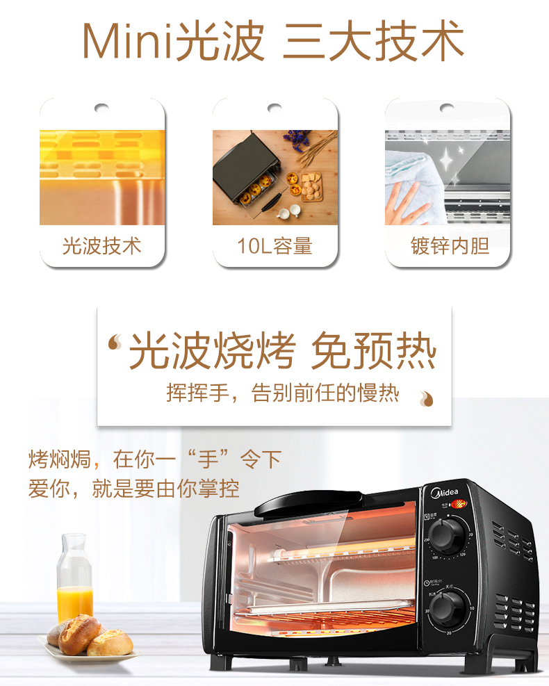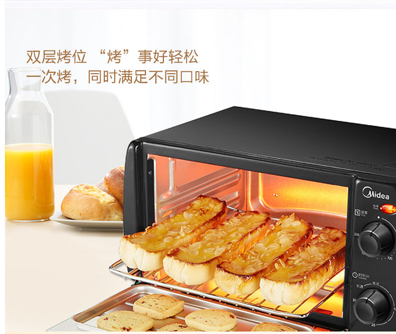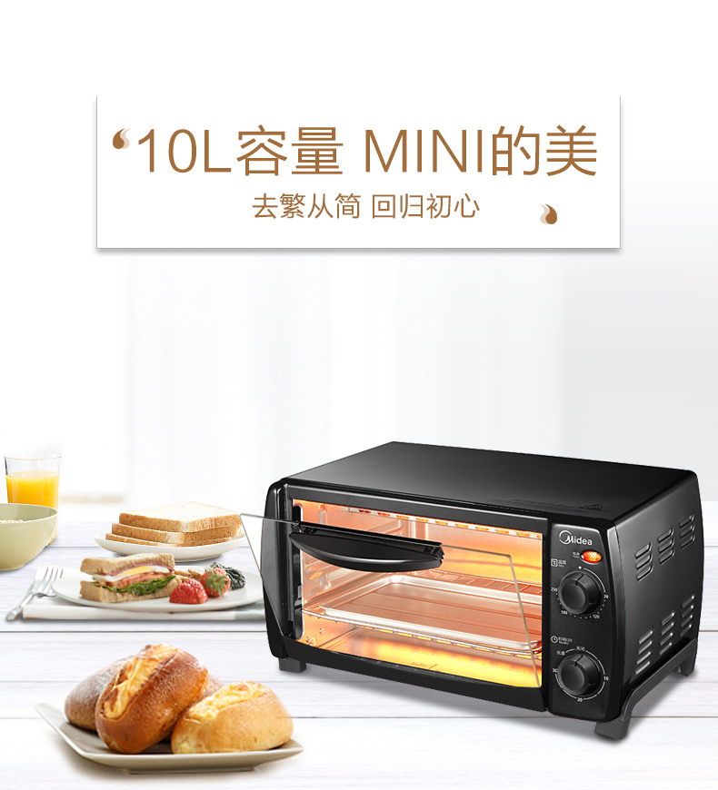 • 商品名称:美的(Midea) T1-L108B 多功能迷你小烤箱 双层烤位 10L