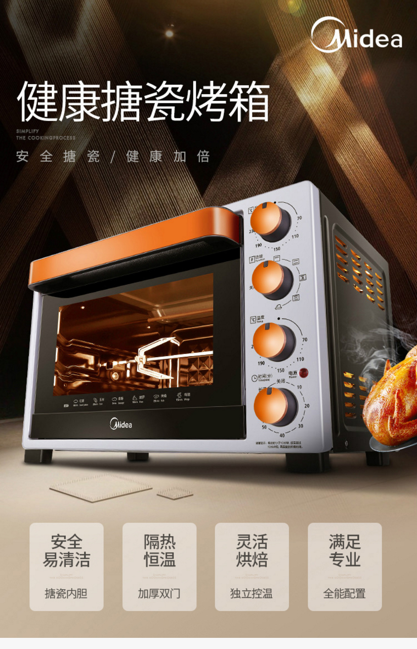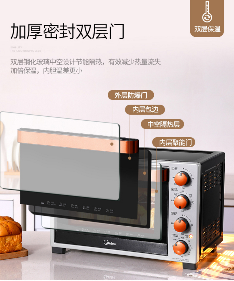 美的(Midea) T3-L324D 多功能电烤箱 上下独立控温 搪瓷易清洁内胆 双层隔热门 32L