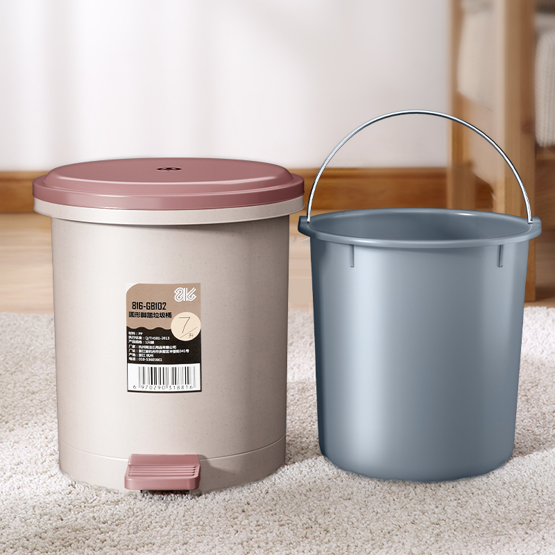 • 商品名称:家杰优品 816-GB102 双层脚踏垃圾桶圆形厨房卫生间家用翻盖带盖脚踩 7L