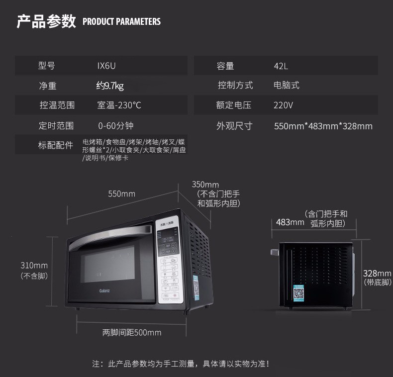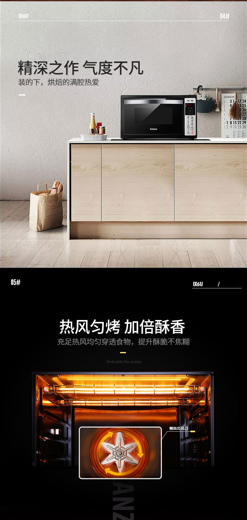 • 商品名称:格兰仕(Galanz) iX6U 全自动智能电烤箱家用42升大容量烘焙多功能旋转烤叉