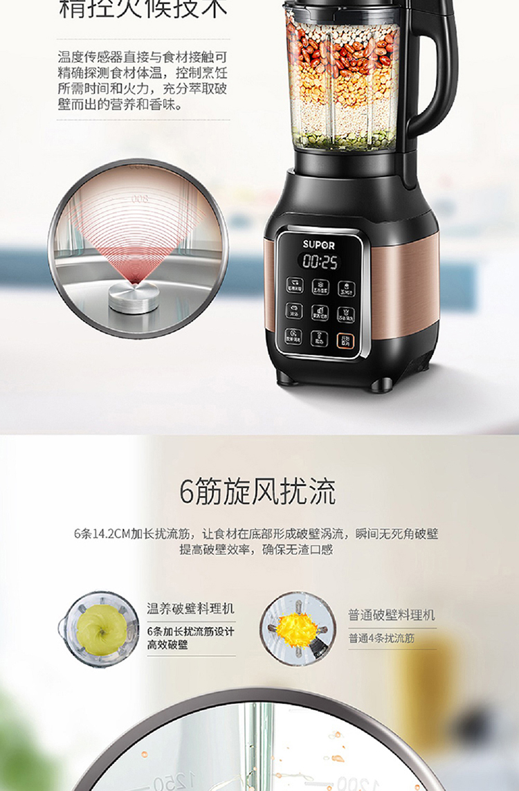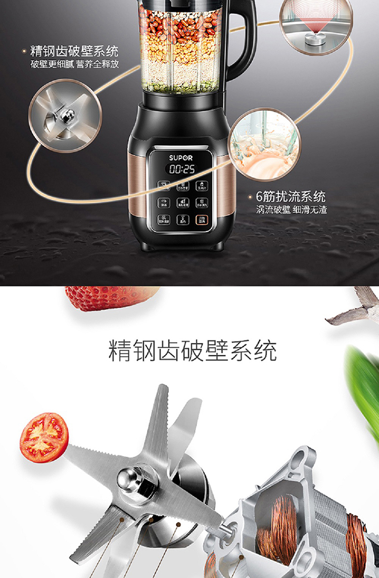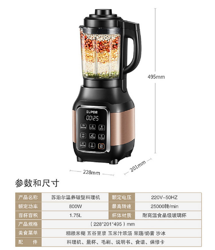 • 商品名称:苏泊尔(SUPOR) JP12D-800 破壁机家用多功能绞肉果汁搅拌料理机宝宝辅食机