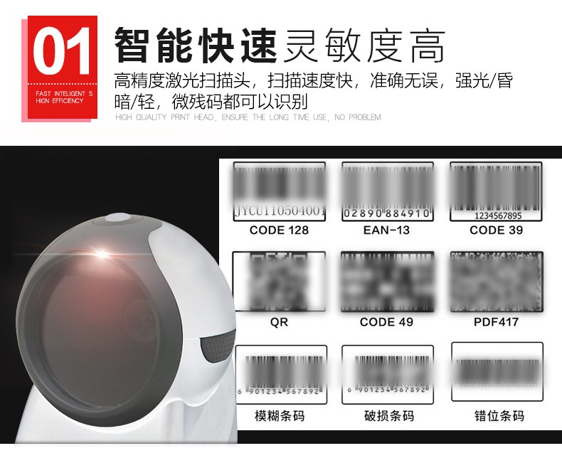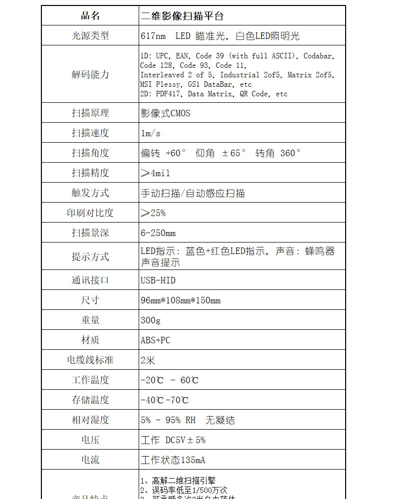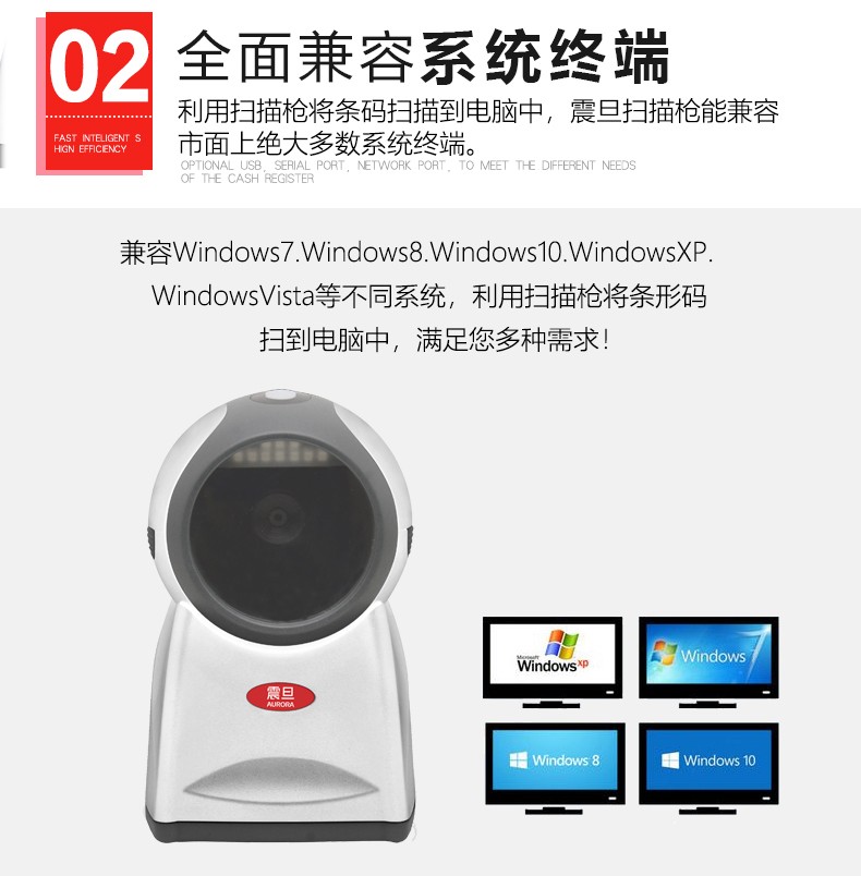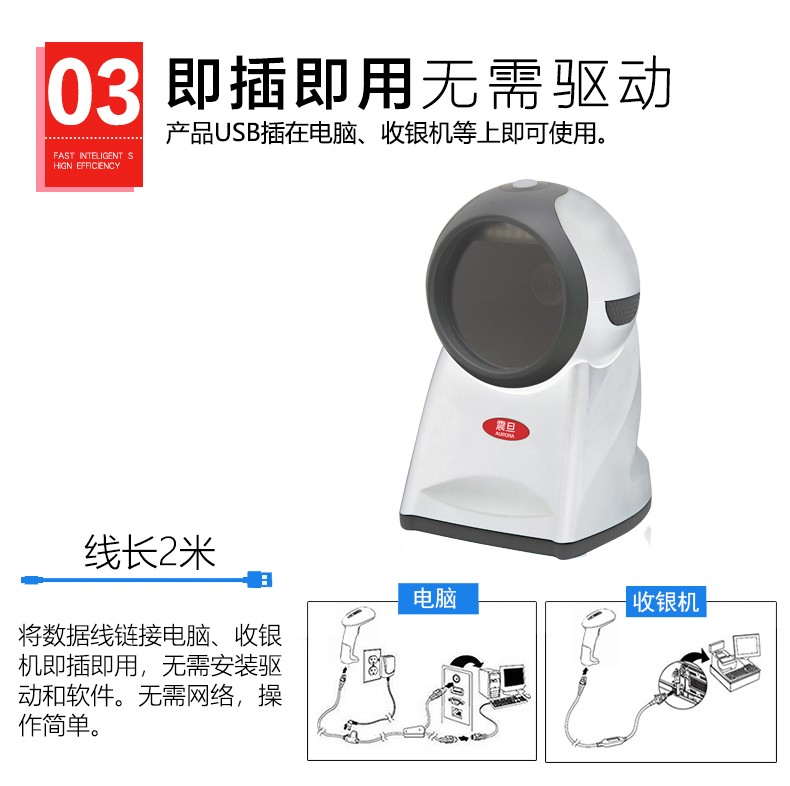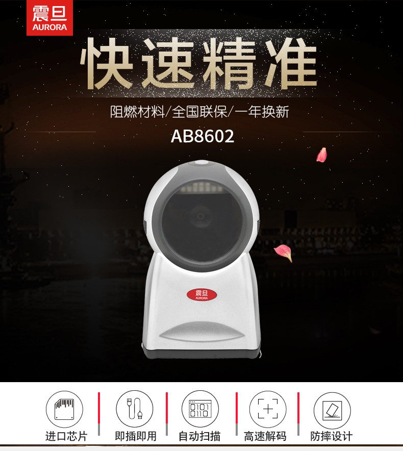 • 商品名称:震旦 AB8602 工业级二维有线影像扫描平台超市收银扫描枪