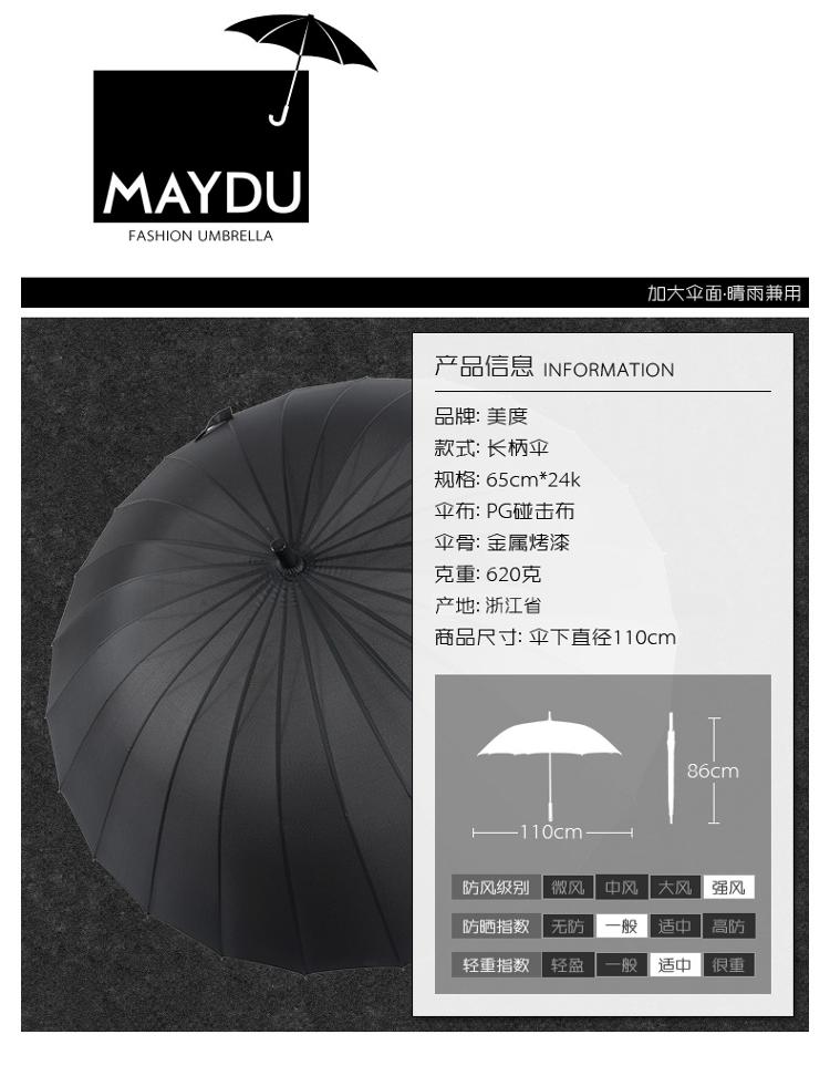 • 商品名称:美度(MAYDU) M5003 24骨超大男士商务长柄晴雨伞 枣红色