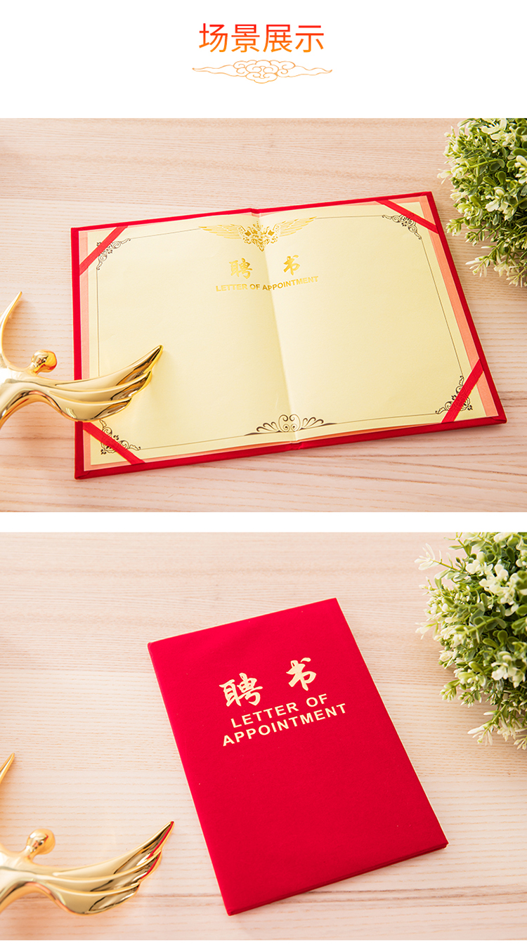得力(deli)7599 荣光系列绒布浮雕工艺聘书 12K 红色