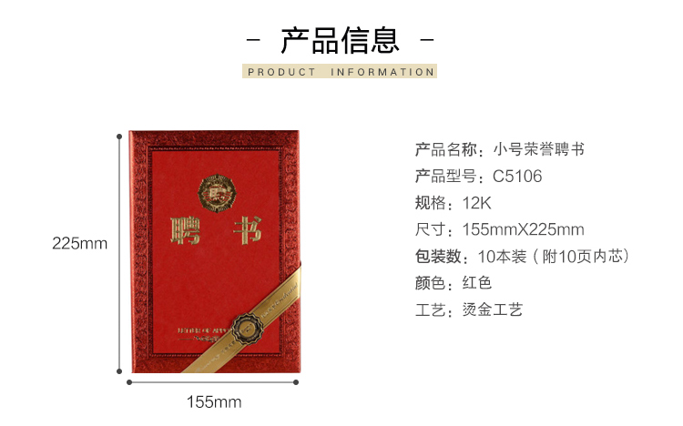• 商品名称:齐心(Comix) C5106 荣誉聘书 附聘书内芯12K