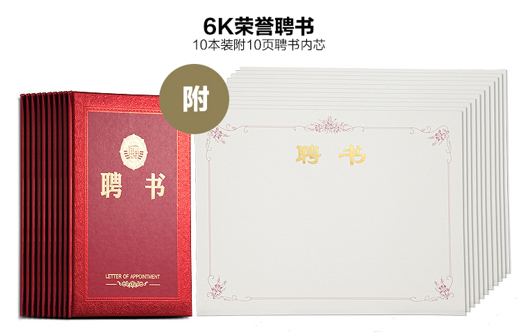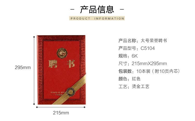 • 商品名称:齐心(Comix) C5104 6K荣誉聘书 附10页聘书内芯