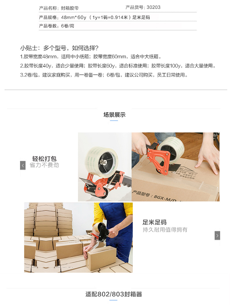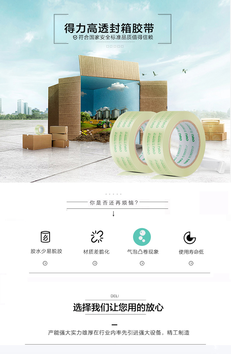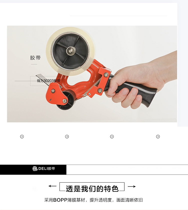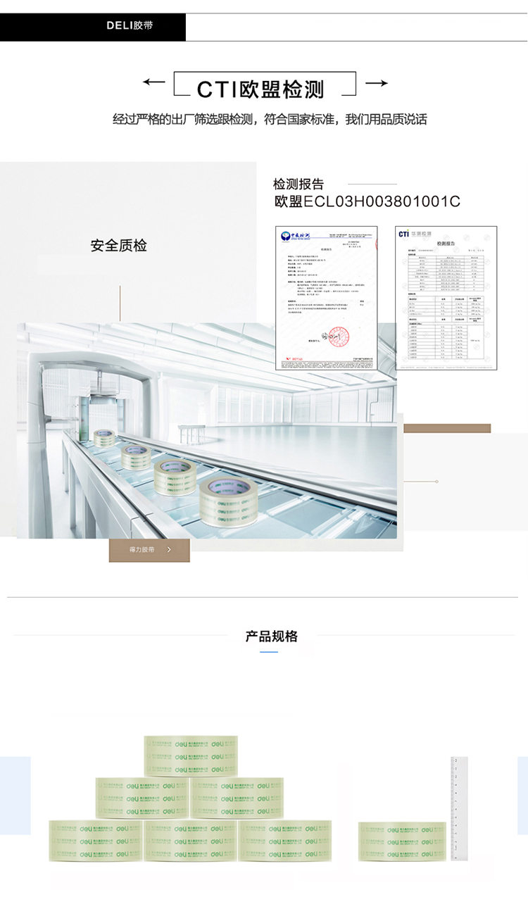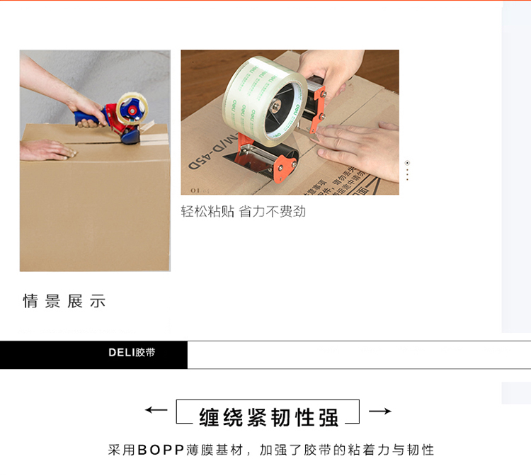 • 商品名称:得力(deli)30203 胶带 高透明度封箱胶带48mm*60y 54.9米 6卷/筒