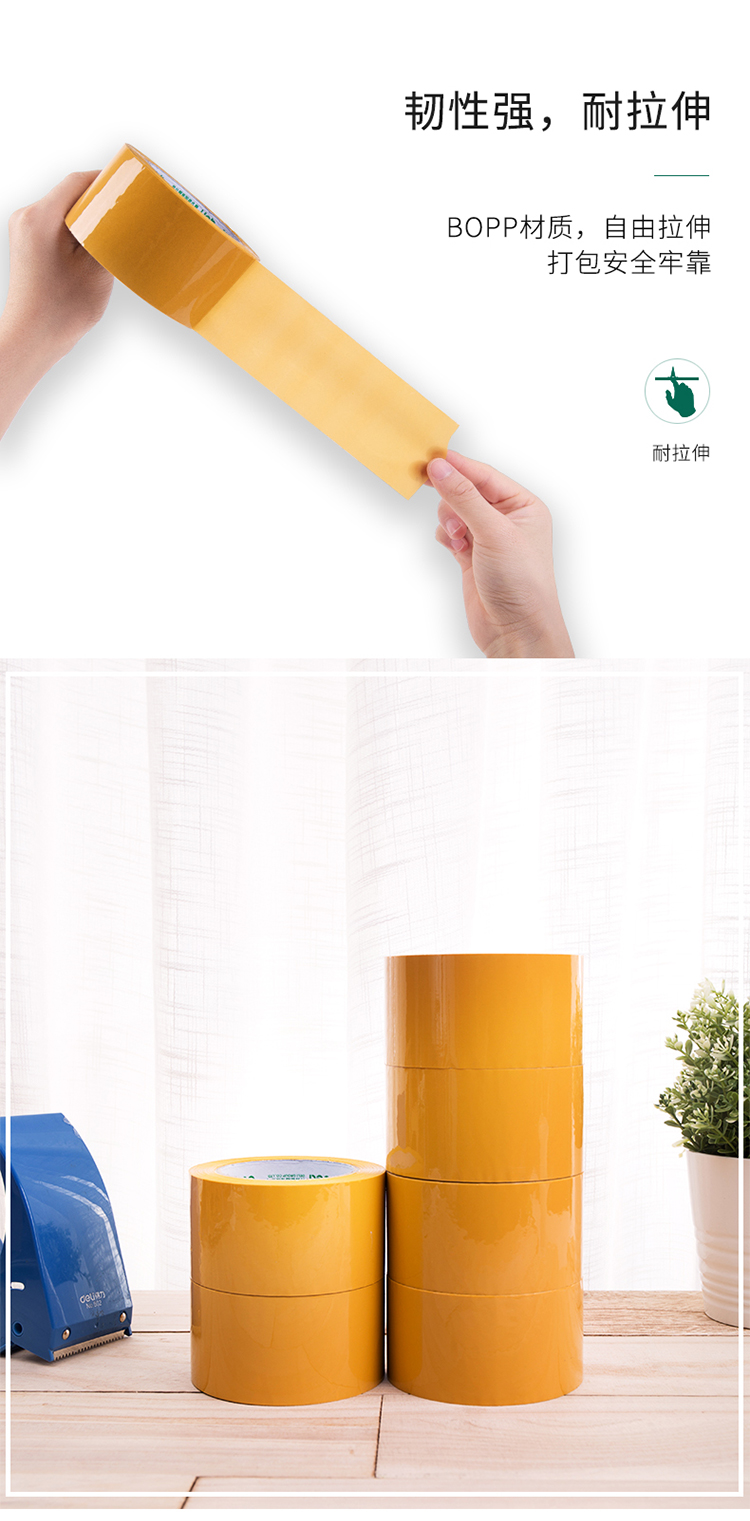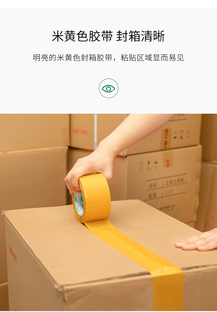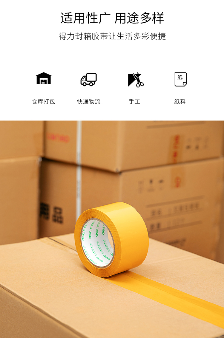 得力(deli)30359 胶带 60mm*100y(91.4米)米黄色封箱胶带打包宽胶带