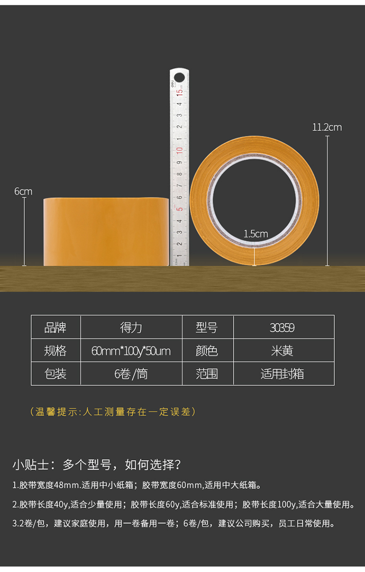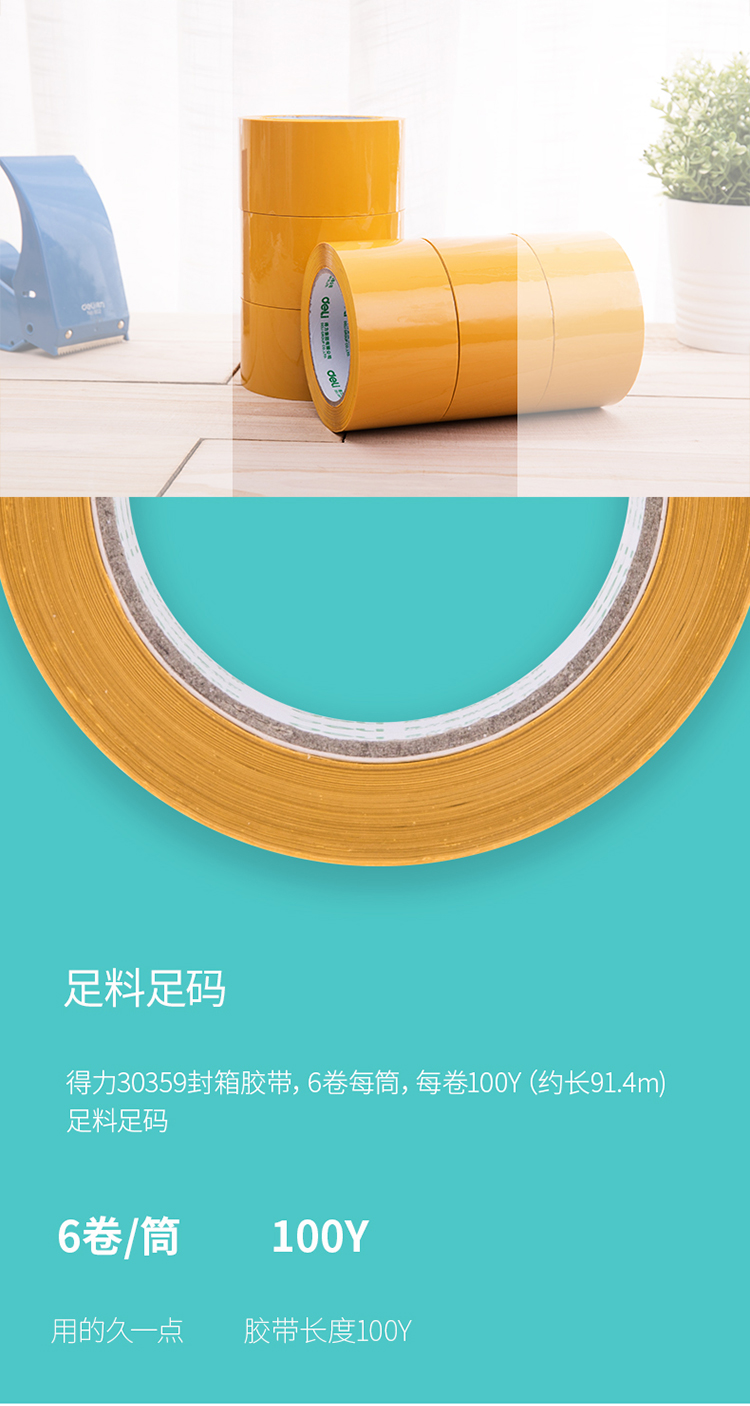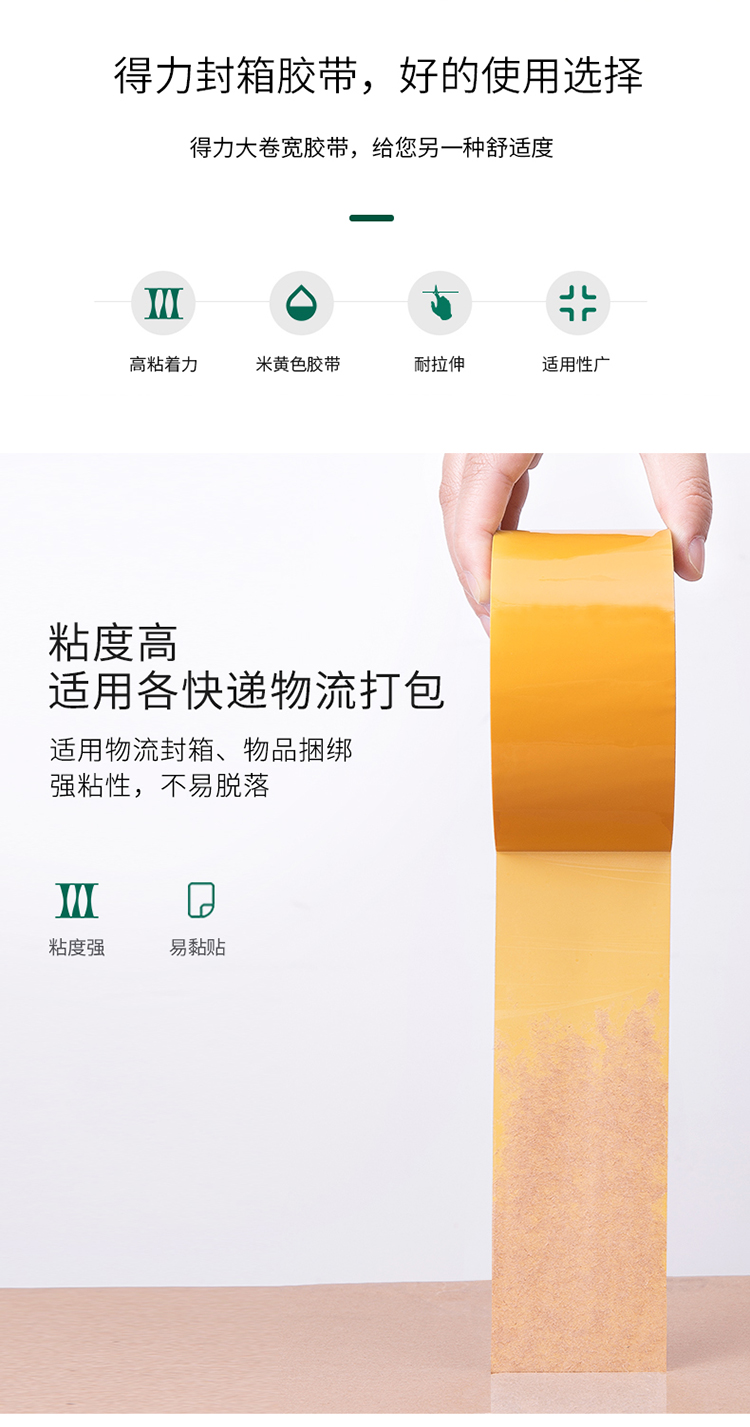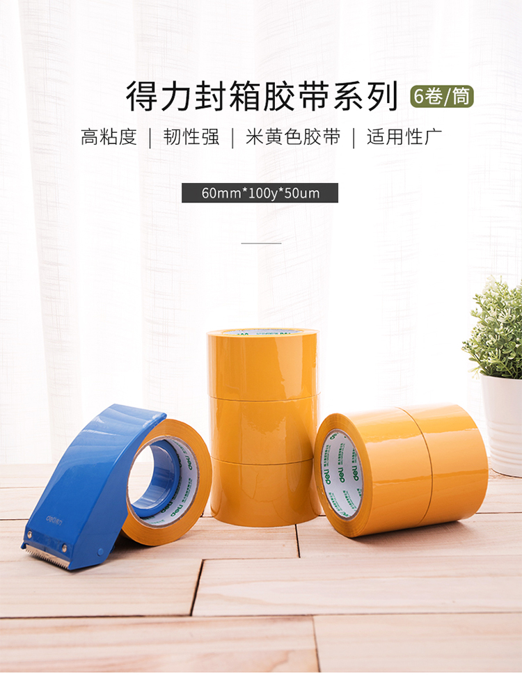 • 商品名称:得力(deli)30359 胶带 60mm*100y(91.4米)米黄色封箱胶带打包宽胶带