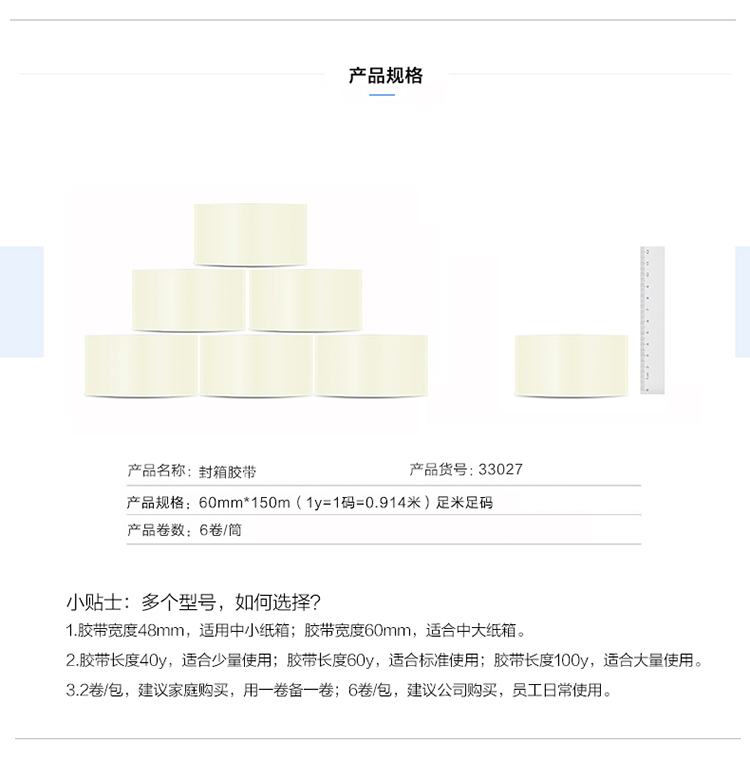 • 商品名称:得力(deli)33027 透明封箱胶带60mm*150m(50um)6卷/筒