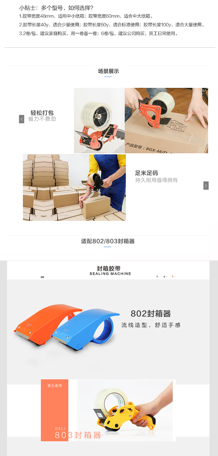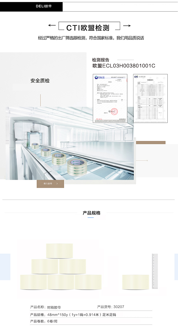 • 商品名称:得力(deli)30207 透明封箱胶带48mm*150y(137米) 6卷/筒