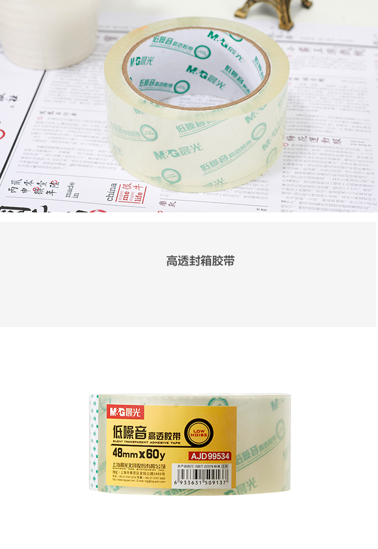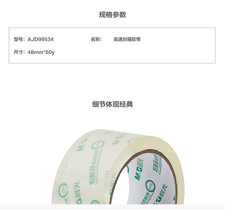 • 商品名称:晨光(M&G)AJD99534 高透封箱胶带 低噪音透明胶带 48mm*60y